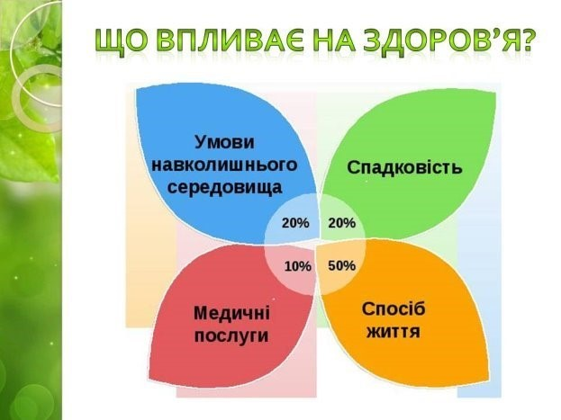 Здоров’я — це не лише відсутність хвороб, а стан фізичного, психічного та соціального благополуччя. У сучасному світі на здоров’я людини впливають: