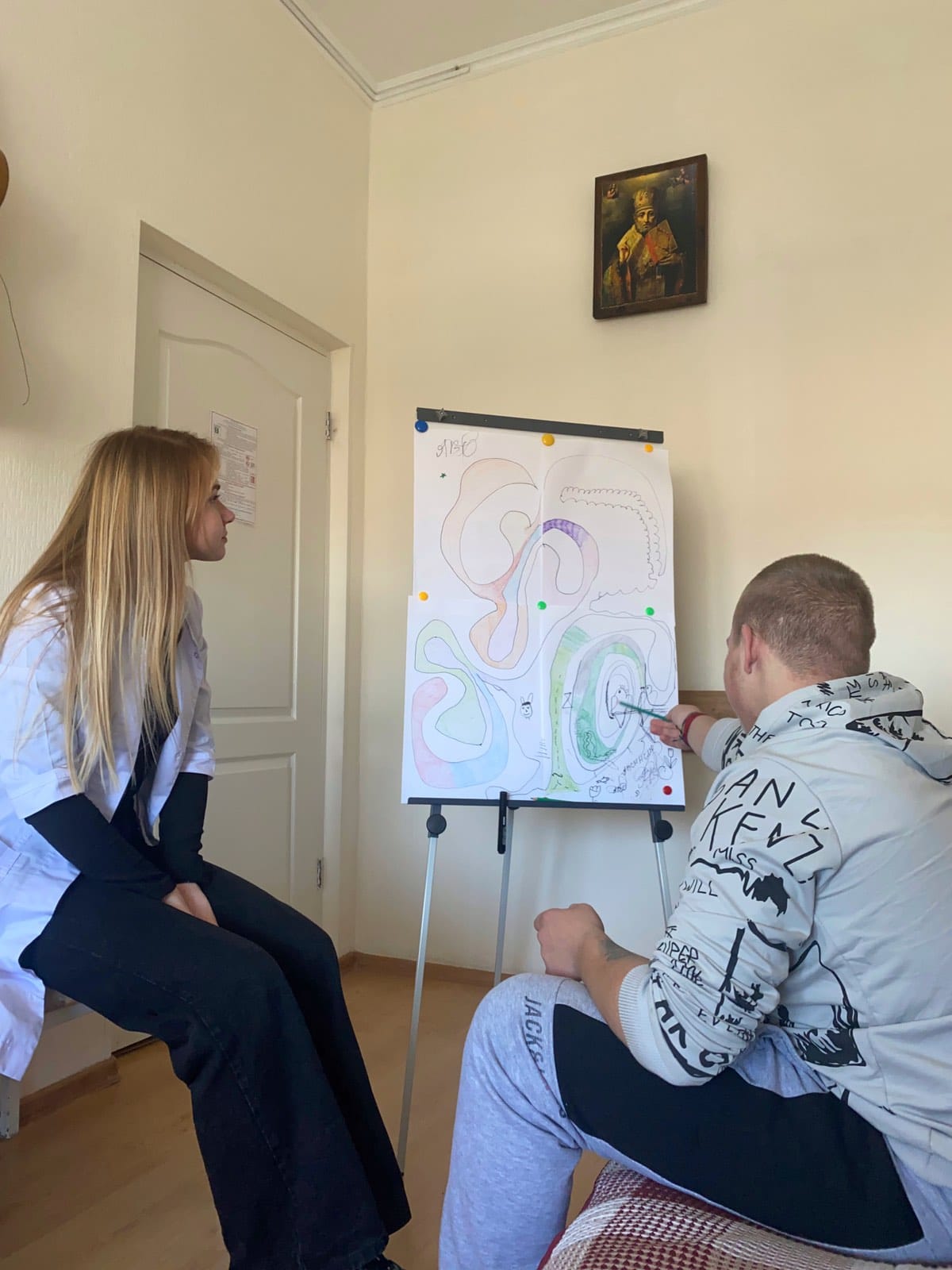 • Психологічна реабілітація: 🔹психодіагностика; 🔹психокорекція; 🔹психотерапія; 🔹кризове консультування; 🔹арт- та музикотерапія; (фото/відео роботи психологів)