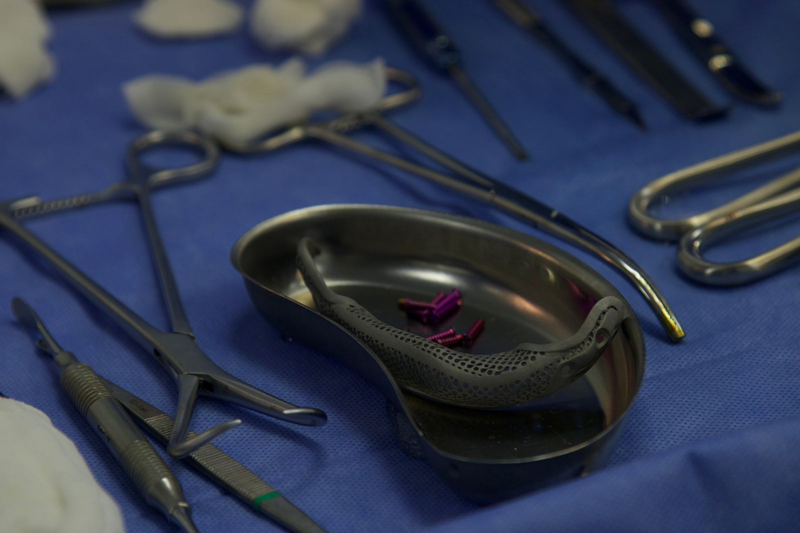 • реконструкцію нижньої щелепи з використанням пацієнт-специфічного титанового імплантату в поєднанні з аутокістковим трансплантатом із клубової кістки пацієнта;
