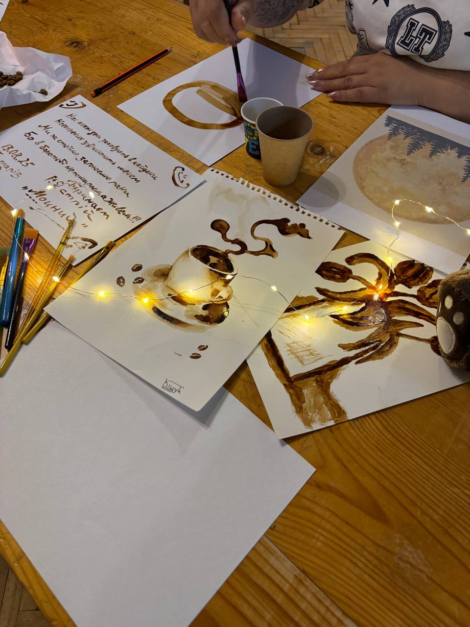 Цей незвичний вид мистецтва поєднує аромат кави, тепло спілкування та процес творчого самовираження. Він допомагає розслабитися, зняти емоційну напругу, знайти внутрішню гармонію та натхнення.