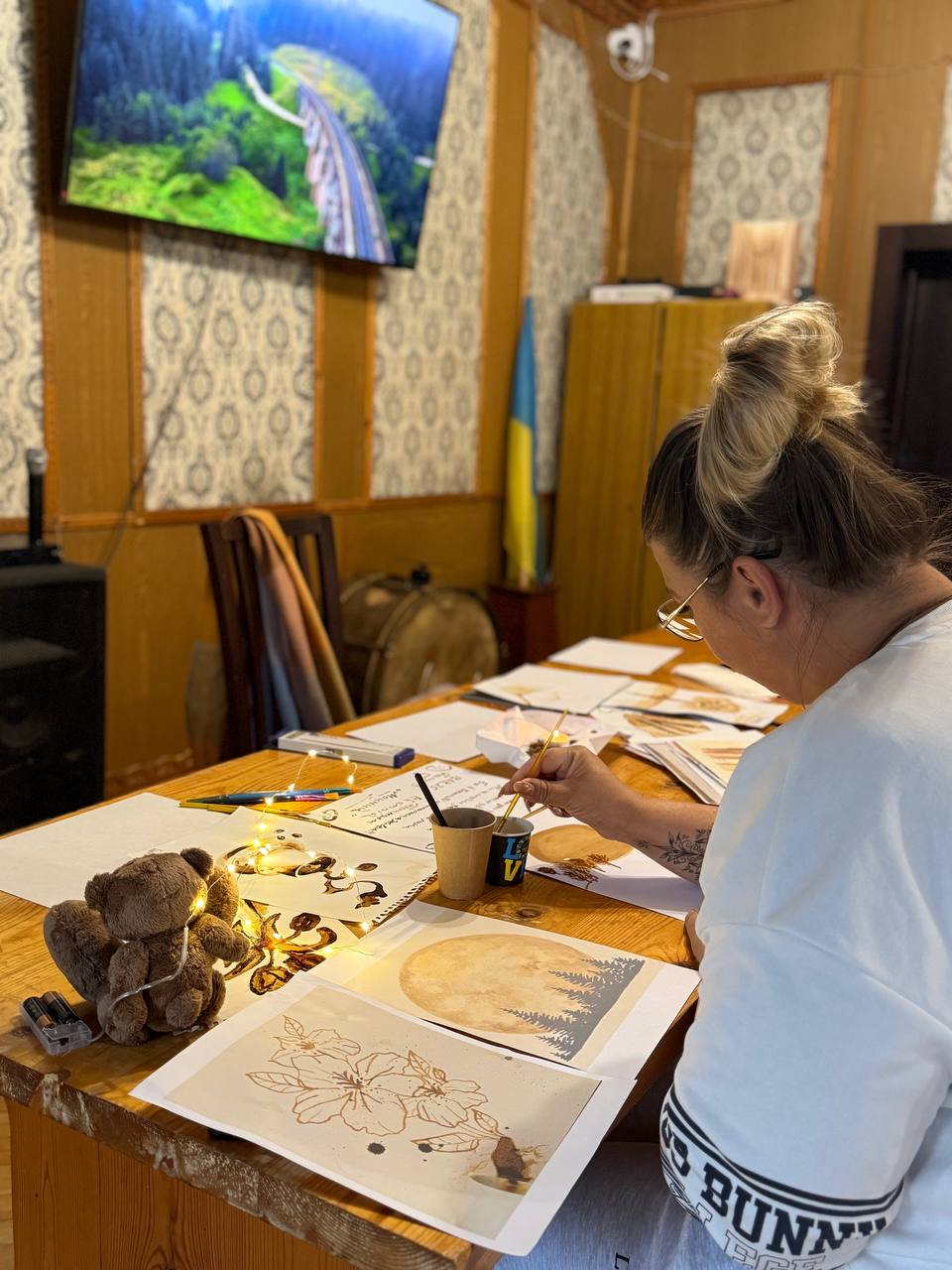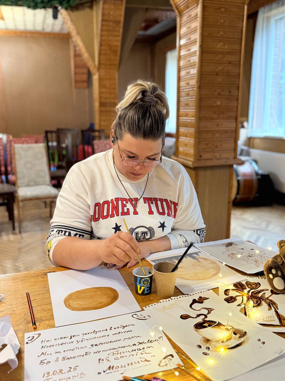 Наші пацієнти та військовослужбовці з радістю поринули у цей творчий світ, де кавові відтінки перетворилися на справжні шедеври.