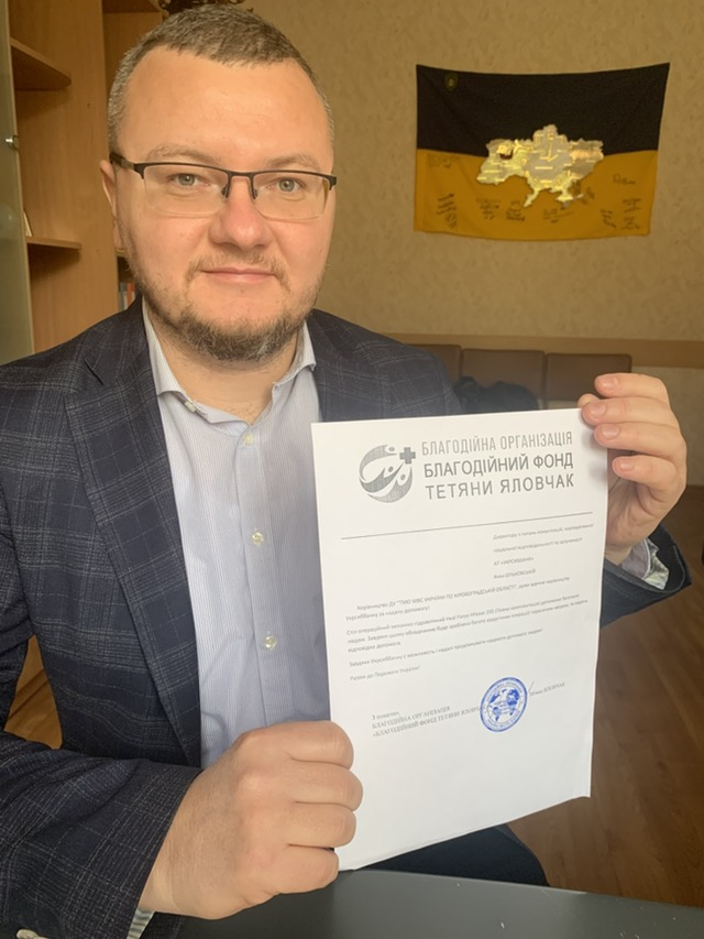 Також висловлюємо вдячність Благодійній організації «Благодійний фонд Тетяни Яловчак», яка сприяла організації передачі даного обладнання нашій установі.