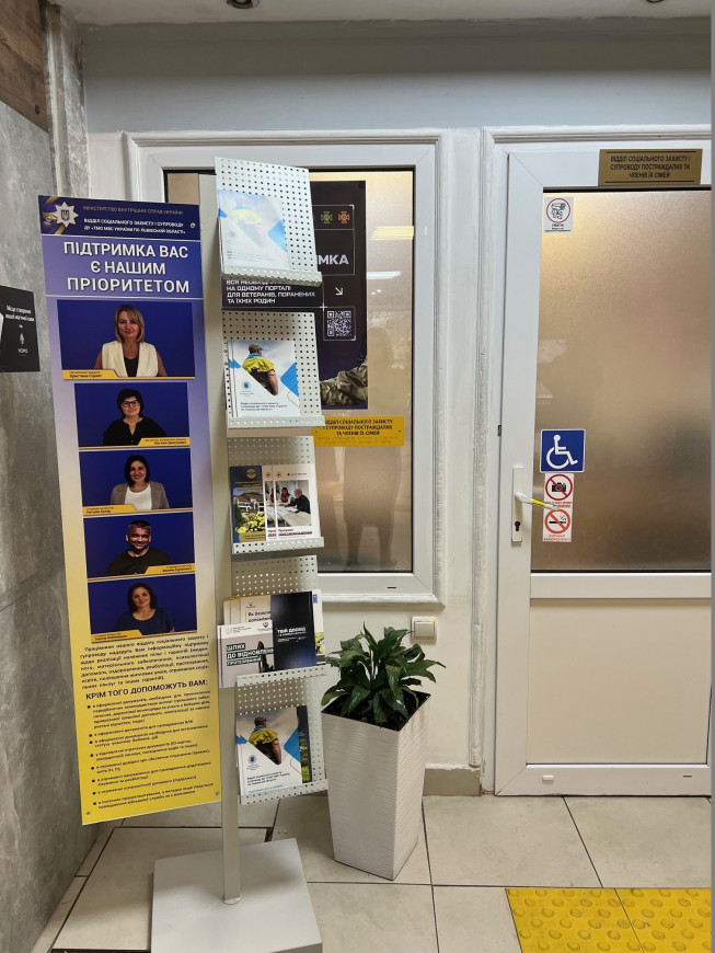 - наявні поручні та тактильна плитка на 1-му поверсі установи, де знаходиться реєстратура, реєстратура медичних послуг, медична (військово-лікарська) комісія;