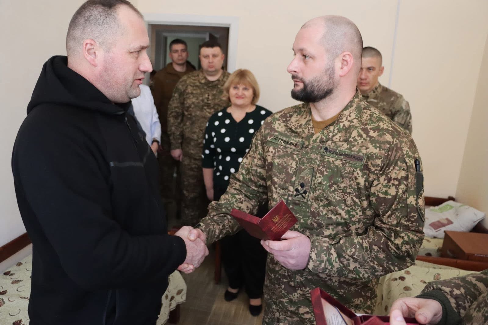 22 січня 2026 року заступник командувача Національної гвардії України по роботі з особовим складом бригадний генерал Валентин Острижний відвідав військовослужбовців Національної гвардії України, які проходять лікування та реабілітацію після поранень в Державній установі ,,Територіальне медичне об’єднання Міністерства внутрішніх справ України по Черкаській області’’. Під час візиту він поспілкувався з військовослужбовцями, які отримали поранення під час виконання бойових завдань та вручив відомчі нагороди гвардійцям, які проявили мужність, відвагу та героїзм під час виконання бойових завдань. За сумлінну службу, відданість Військовій присязі та Українському народові, а також за зразкове виконання завдань у протидії збройній агресії російської федерації військовослужбовці були нагороджені почесним нагрудним знаком командувача НГУ ,,За стійкість та незламність’’. Заступник командувача Національної гвардії України подякував персоналу закладу за професійну роботу, яку проводять працівники закладу, надаючи допомогу військовослужбовцям.