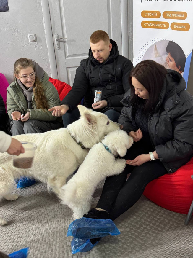 Психологічне відновлення. Каністерапія зменшує психоемоційну напругу, допомагає впоратися із симптомами ПТСР та сприяє поступовій адаптації до мирного життя.