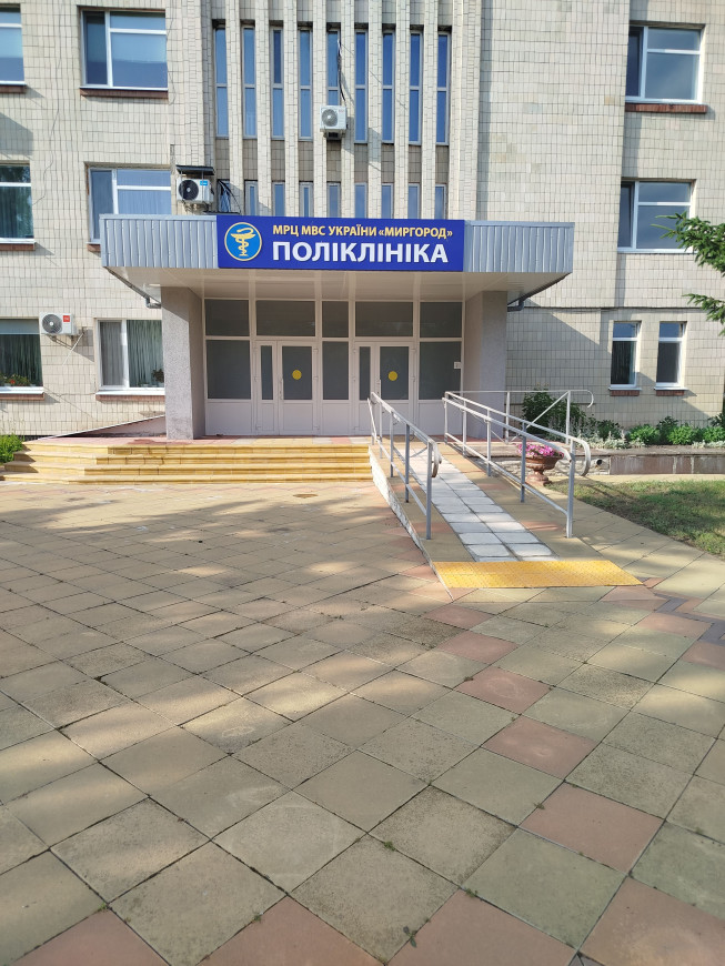 В даний час встановлені окремі елементи, тактильною плиткою облаштовано центральний вхід в будівлю і вхід в поліклінічне відділення, проте всередині будівлі тактильну плитку буде змонтовано після ремонту підлоги, перила на сходах поверхів облаштовані наліпками зі шрифтом Брайля із вказанням поверху, біля ліфтів є таблички зі шрифтом Брайля, в закладі є спеціально обладнана житлова кімната для проживання осіб на візку; сходи поліклінічного відділення облаштовані жовтими контрастними смугами для осіб із порушенням зору; прозорі двері в будівлі облаштовані елементом візуального контрасту – коло жовтого кольору, вхід до медичних кабінетів облаштовано табличками зі шрифтом Брайля. В поліклінічному відділенні продовжуються оздоблення плиткою туалету для людей з особливими потребами.