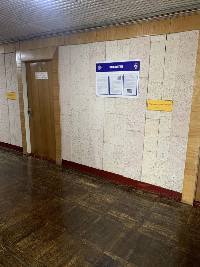 4.3 У холі закладу встановлений монітор, на якому транслюється відеоролик із сурдоперекладом та біжучим рядком, що забезпечує доступність інформації для осіб із порушеннями слуху та різними рівнями обмеження здатності до комунікації. Монітор розміщений у зручному для перегляду місці. Екран має достатній розмір, текстова інформація у вигляді бігучого рядка добре читається, а доступ до монітора не обмежений жодними перешкодами.
