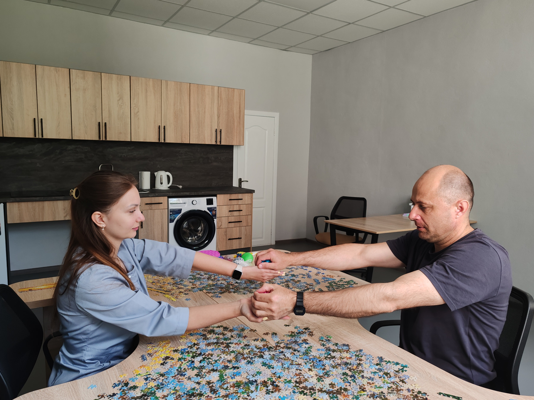 Відділення укомплектоване кваліфікованими фахівцями: лікарями фізичної та реабілітаційної медицини, фізичними терапевтами, масажистами, психологами та середнім медичним персоналом, які забезпечують високий рівень надання медичних послуг.