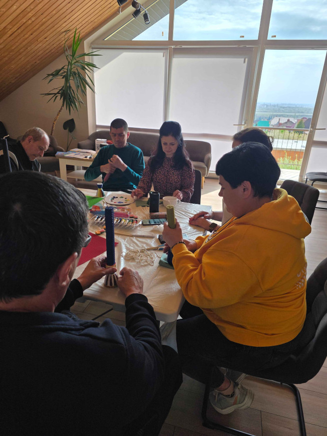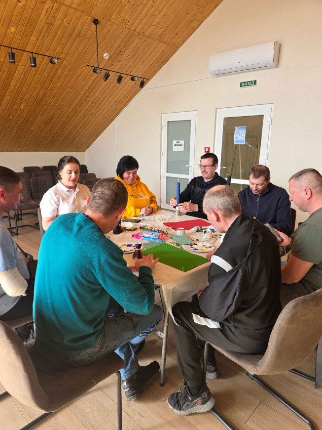 Заняття проходило у затишному просторі Центру життєстійкості, облаштованому на базі громадської організації «Неємія». Локація сприяла спілкуванню, взаємній підтримці та відчуттю спільності. Атмосфера була по-справжньому тепла й надихаюча: кожен учасник мав змогу проявити себе, відволіктися від буденних турбот і відчути, що навіть у непростих умовах лікування є місце для краси та творчості.