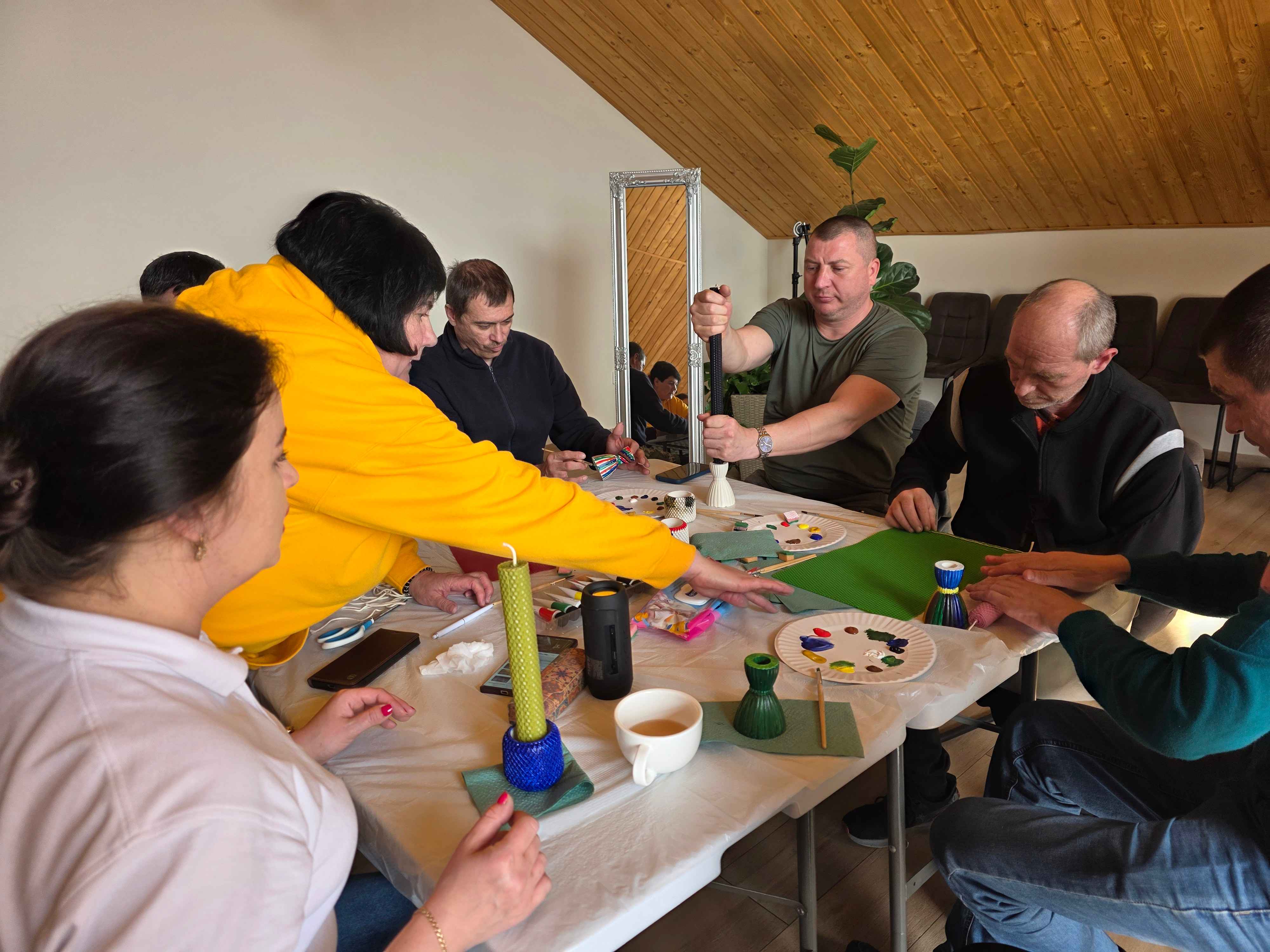 Цього разу учасники заходу розмальовували підсвічники та власноруч виготовляли свічки з вощини. Простий, але водночас символічний процес — створення світла своїми руками — став для бійців не лише творчим завданням, а й актом внутрішнього відновлення.