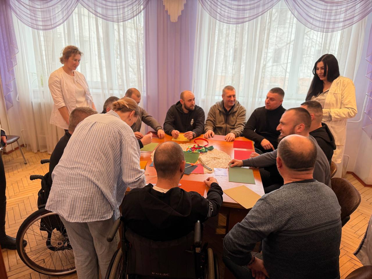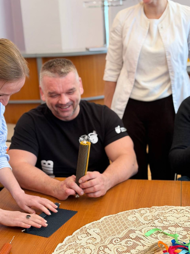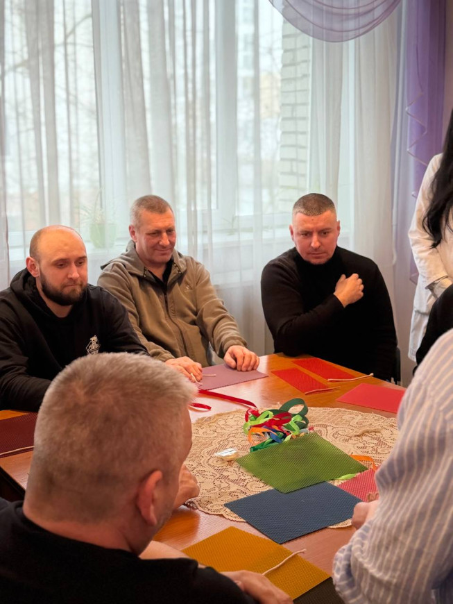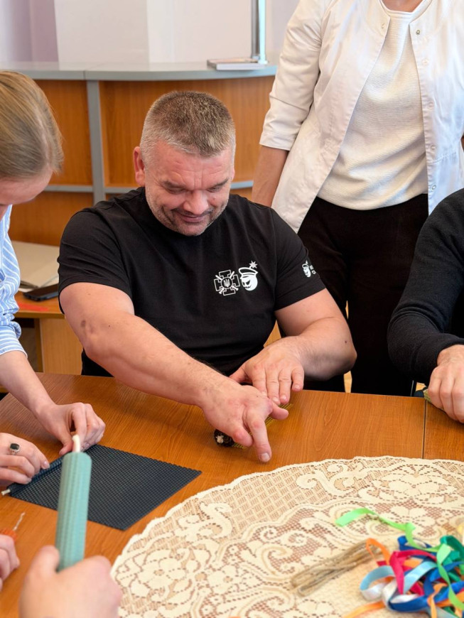 28 січня 2026 наші захисники долучилися до особливої практики психологічного відновлення – разом із психологами та соціальними працівниками вони створювали свічки з натуральної бджолиної вощини. До заходу долучились помічник начальника ГУНП у Львівській області Володимир Федьків та провідний консультант з ветеранської політики Василь Іванович.