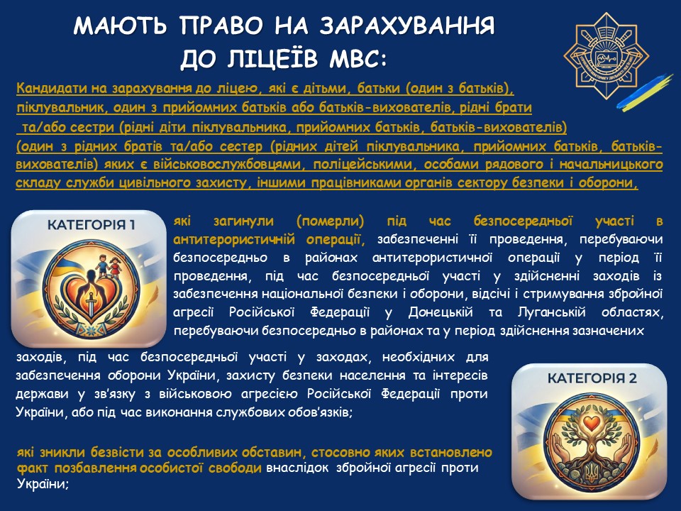 У структурі МВС на сьогодні функціонує 5 ліцеїв безпекового спрямування та національно-патріотичного виховання, положення про які затверджено постановою Кабінету Міністрів України від 09 квітня 2024 року № 420: