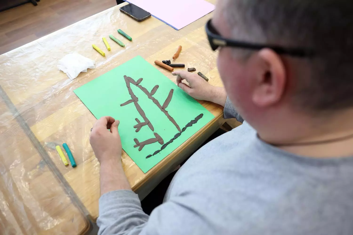 «Ми не бачимо, тому все треба уявляти. Стіл, кімнату, будівлю - все в голові малюєш. Так само і тут. Я уявляю це дерево, відчуваю його руками, по пам’яті створюю. Арт-терапія дуже розвиває уяву і тактильність», - ділиться Олександр.