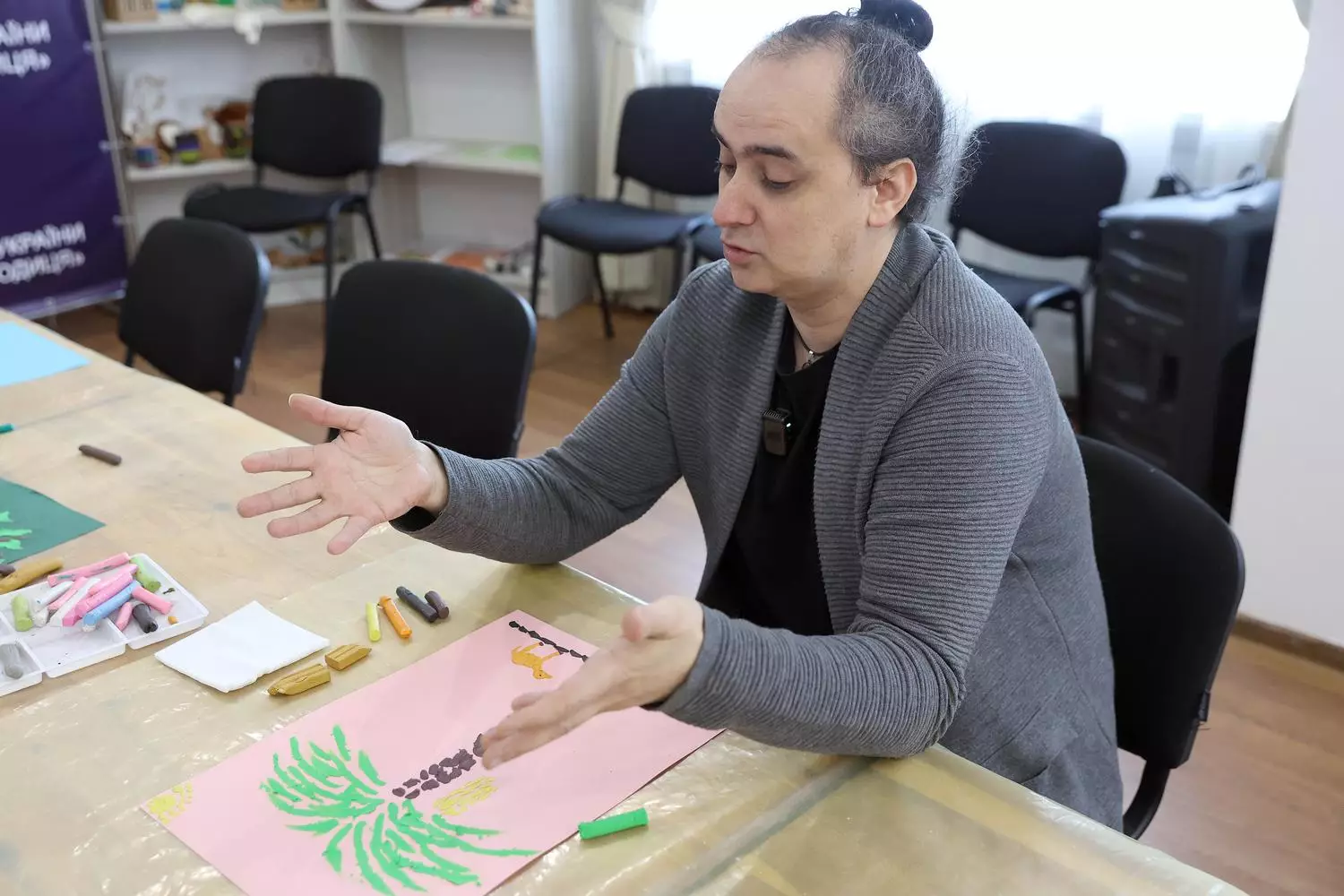 Олександр Шестака працював над образом дуба - символу сили й витривалості. Для нього арт-терапія стала способом вибудовувати внутрішні «карти» світу.