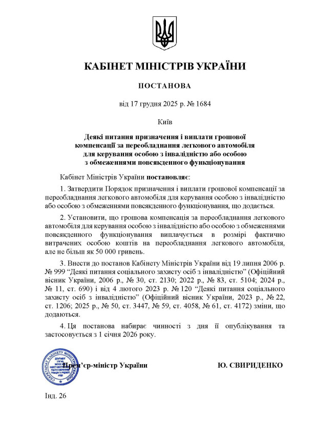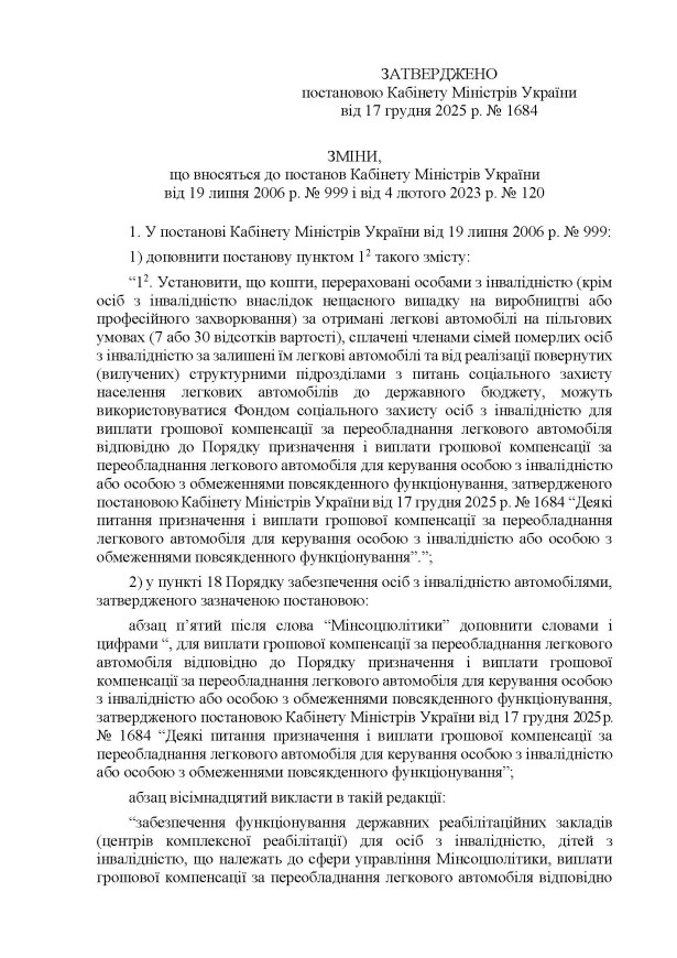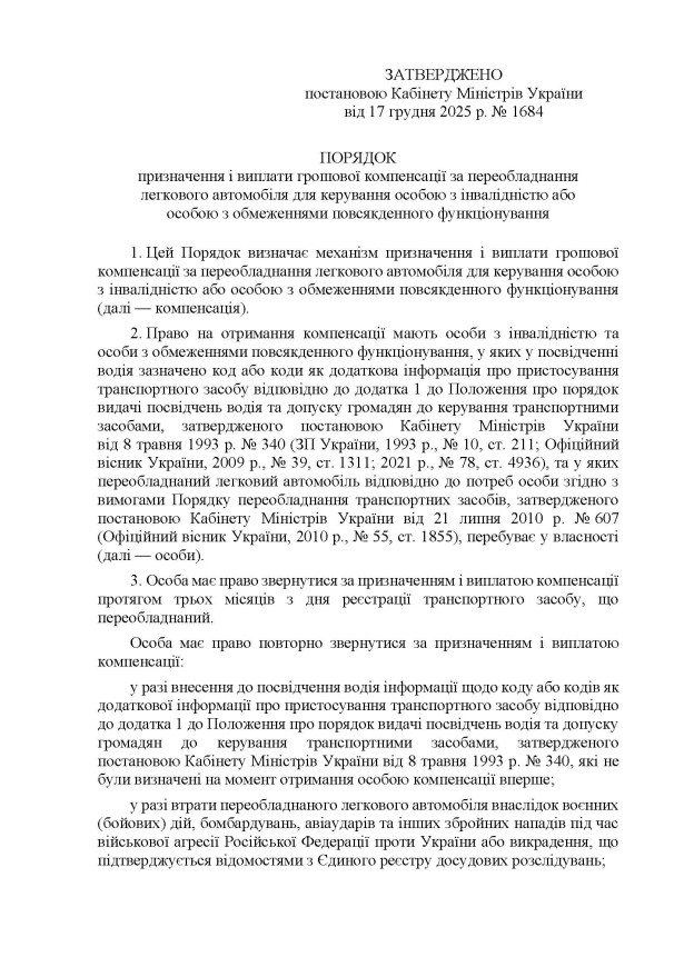Постанова Кабінету Міністрів України від 17 грудня 2025 року No 1684
