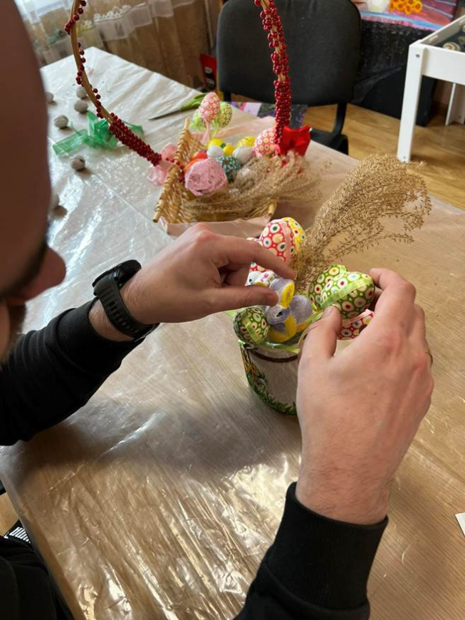 На теренах коворкінгу для ветеранів, який діє у відділенні відновного лікування та реабілітації лікарні ДУ «ТМО МВС по Житомирській області» і став комфортним простором щоб займатися творчістю та продуктивною роботою, напередодні Великдня відбулася традиційна культурна подія – розпис писанок. Для більшості – це був перший досвід створення власної писанки. Тому учасники, опановуючи розпис, додавали і власне бачення Всесвіту через створені ними орнаменти. Під час роботи панували неймовірна енергія та дух свята.