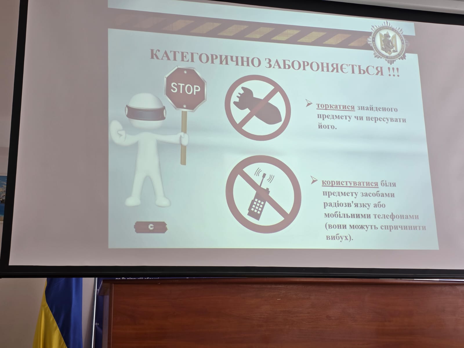 Спікер розпочав зустріч із роз’яснення базових понять, зокрема що таке вибух та які предмети відносяться до категорії вибухонебезпечних. Окремо було акцентовано увагу на правилах безпечної поведінки, які дозволяють мінімізувати ризики для життя і здоров’я людей у разі виявлення підозрілих предметів.