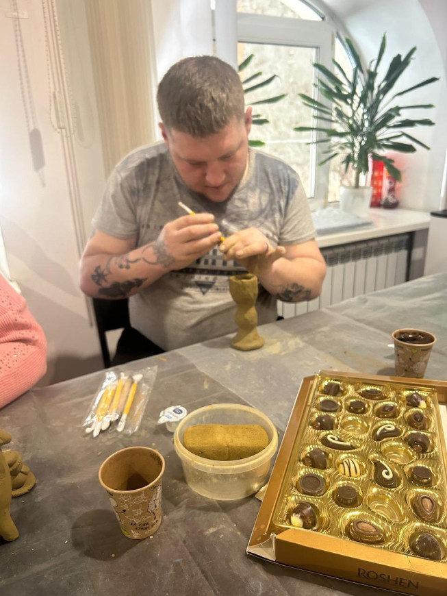 Захід організовано з метою психологічного розвантаження, емоційної підтримки та сприяння відновленню внутрішнього ресурсу наших захисників. У теплій та невимушеній атмосфері учасники мали можливість спробувати себе в гончарному мистецтві, створюючи власні вироби з глини.