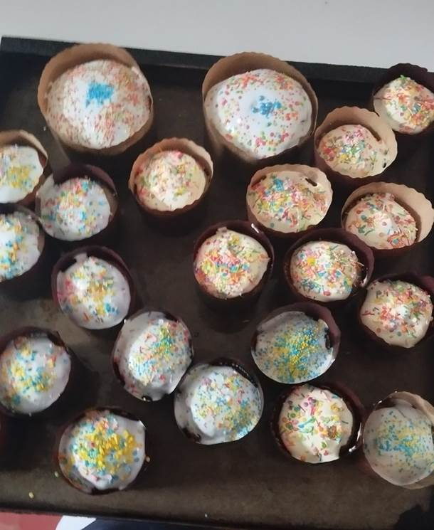 У неділю вранці на Великдень працівники кухні зустрічали своїх відвідувачів у піднесеному настрої, щоб привітати їх та почастувати пасочками, що із любов’ю для них приготували, як для членів великої нашої родини.