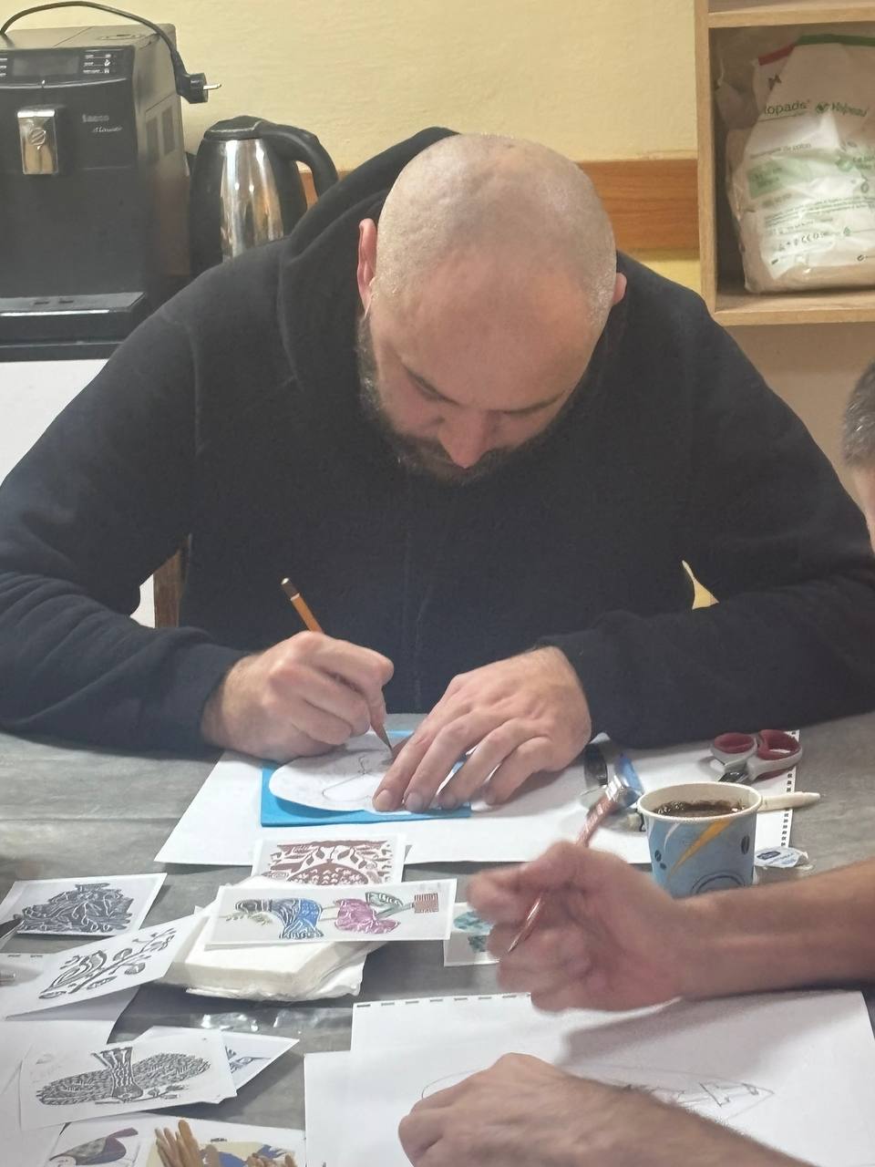Весняні мотиви — птахи, квіти, символи оновлення — оживали на аркушах завдяки старанності та творчому баченню кожного. Процес вимагав уважності та акуратності, однак саме ця зосереджена робота стала важливою складовою емоційного розвантаження. Ліногравюра сприяє розвитку дрібної моторики, концентрації уваги, терпіння та внутрішньої рівноваги.
