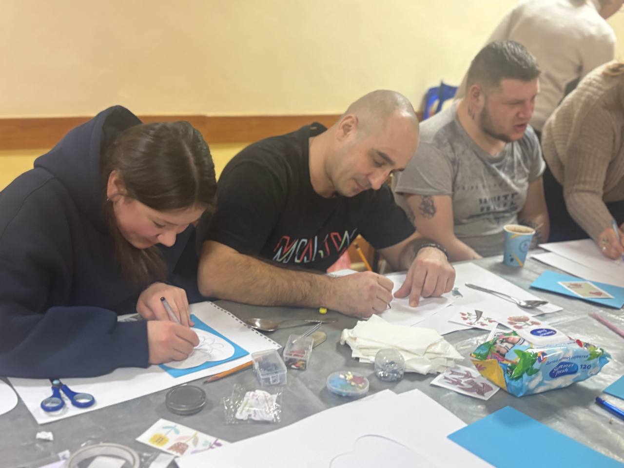 Кожна листівка стала маленькою історією — з настроєм, характером і особливим сенсом. У процесі спільної роботи учасники спілкувалися, підтримували одне одного, ділилися думками та посмішками. Саме такі моменти формують простір довіри та взаєморозуміння.