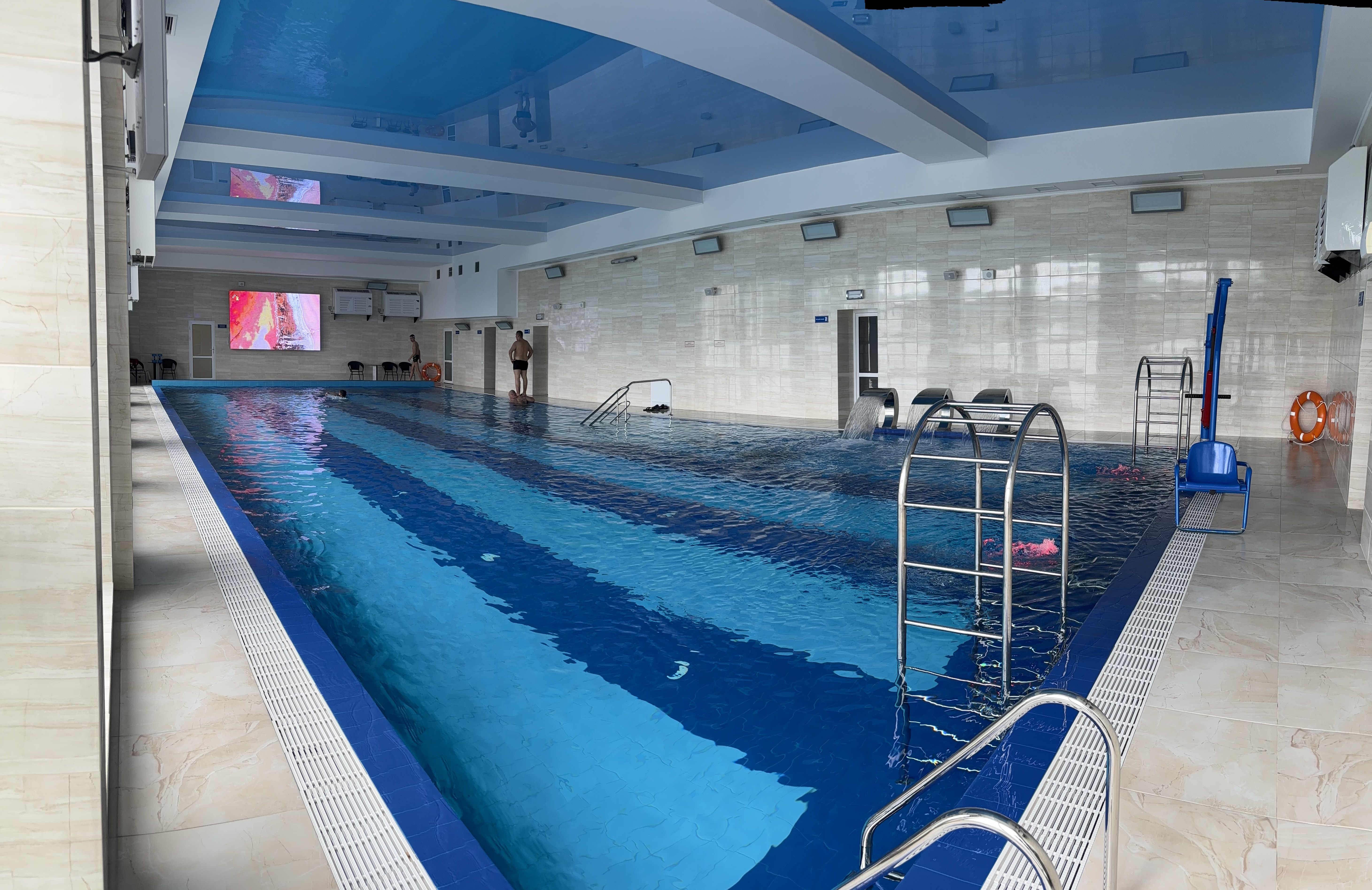 Нещодавно розпочав свою роботу лікувально-плавальний басейн переливного типу з 17 сучасними лікувально-гідропатичними системами аналогів яким в Україні немає. Очистка води проводиться системою пісочних фільтрів, знезаражується електролізом ( виділення активного хлору з солоної води) та за допомогою ультрафіолетових ламп. Температура води завжди підтримується 28℃. Наш басейн - це чудова можливість для гостей нашого центру отримати користь для здоров’я та зарядитися позитивною енергією.