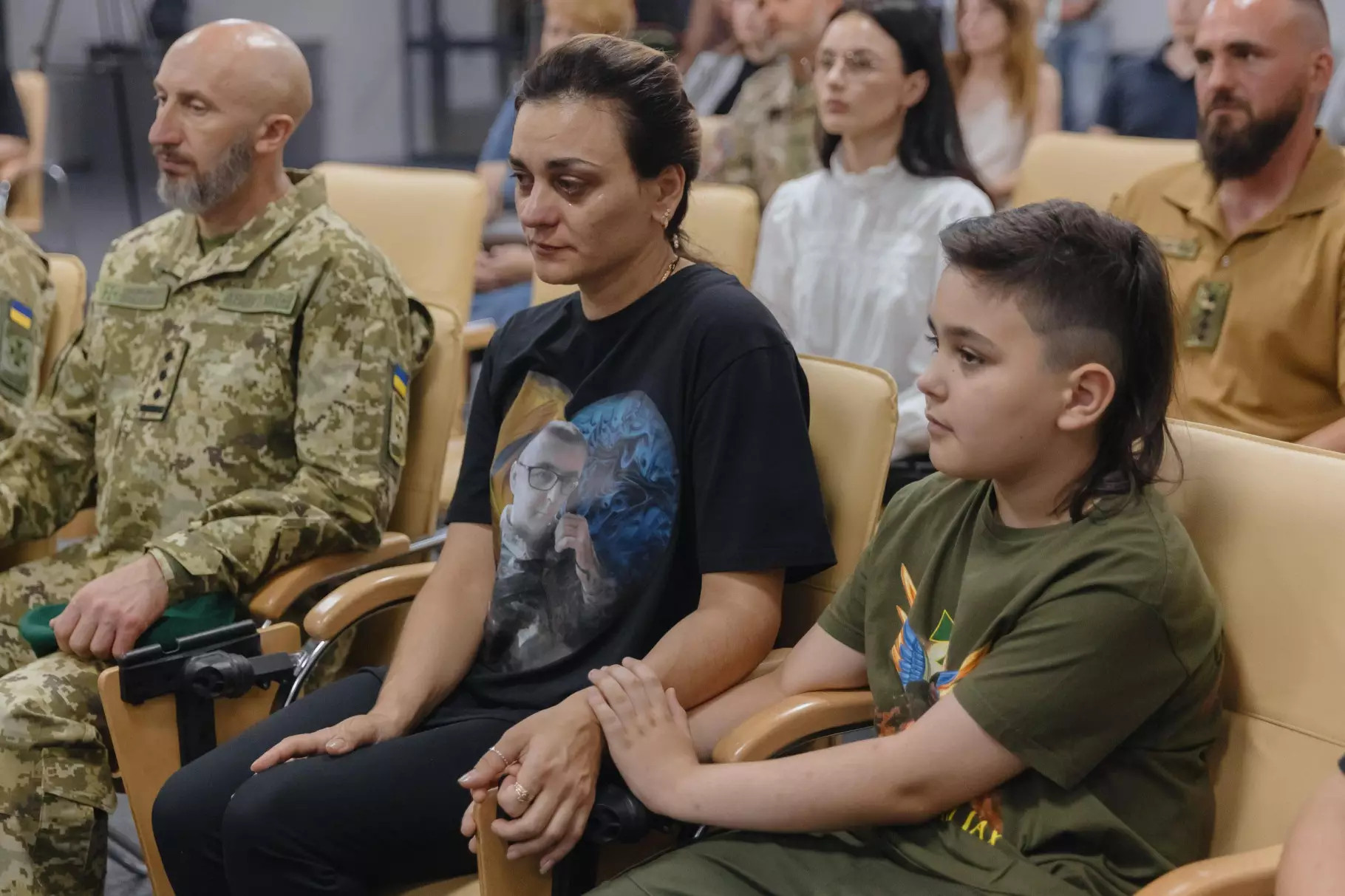 Присутні побачили сюжет і про Героя Богдана Бондарчука – спецпризначенця поліції Чернігівщини, який загинув під час оборони Бахмута. QR-код з посиланням на «Книгу пам’яті органів системи МВС» отримала мама полеглого бійця – Світлана Бондарчук.