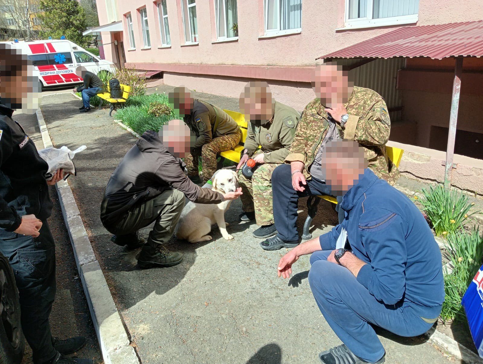 17.04.2025 за ініціативою сектору соціального захисту і супроводу постраждалих та членів їх сімей ДУ "ТМО МВС України по Чернівецькій області" психологами та працівниками кінологічного центру ГУНП в Чернівецькій області організовано сеанс каністерапії для поранених оборонців нашої Незалежності, які перебувають на лікуванні.