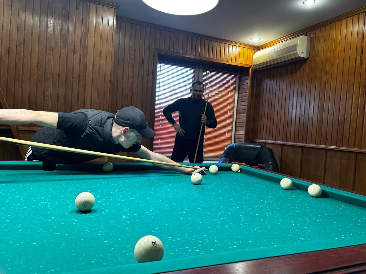 Гра у більярд разом з інспектором сектору соціального захисту та супроводу постраждалих та членів їх сімей ДУ "ТМО МВС України по Дніпропетровській області ".