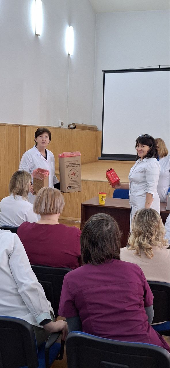 Організовано серію навчань для медичних працівників закладів охорони здоров'я установи щодо нових санітарних нормм та правил порядку управліннямедичними відходами.