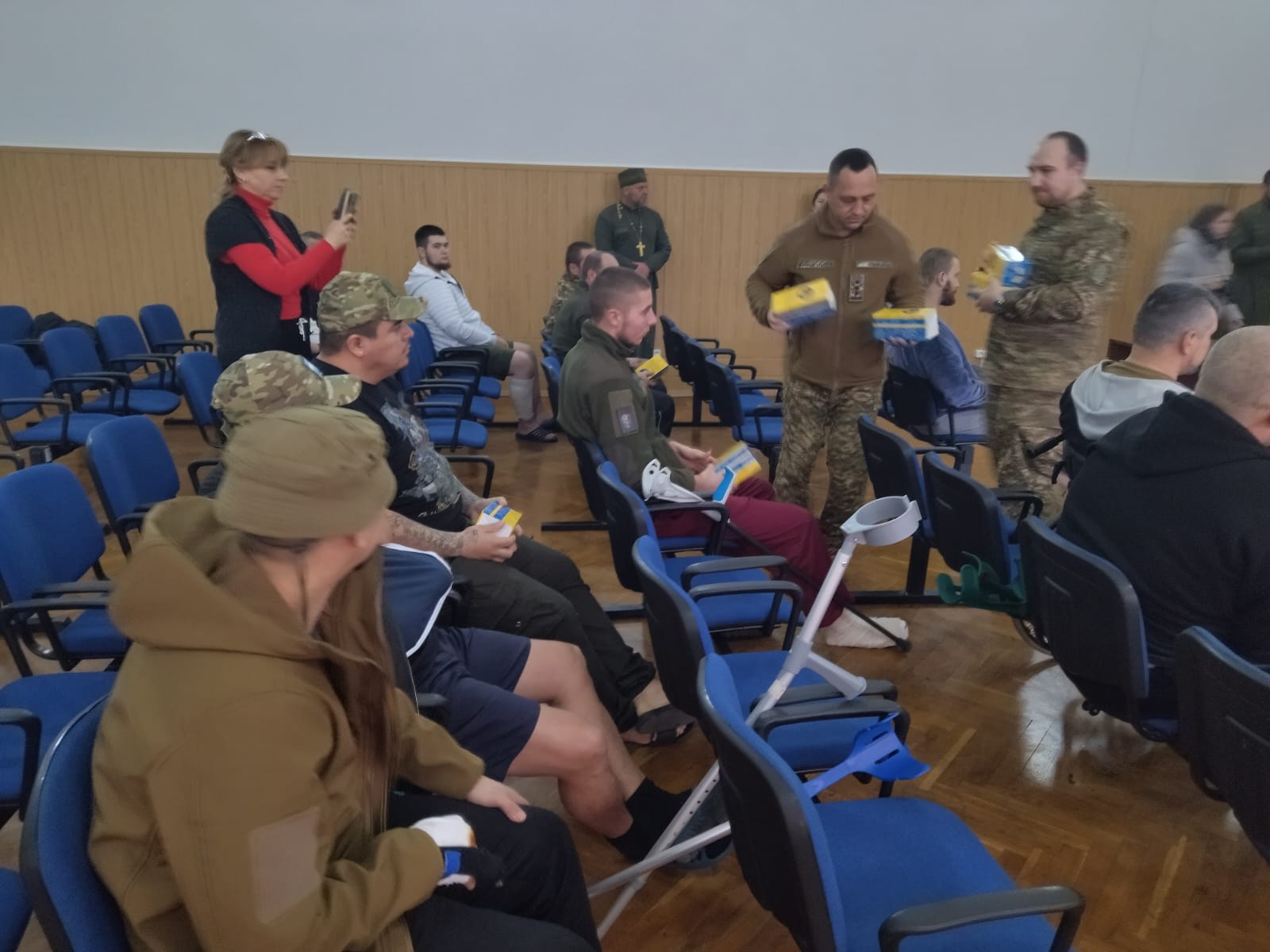 До святкової зустрічі долучилися начальник установи, керівництво Головного управління Національної гвардії України в Дніпропетровській області, а також представники та капелан військової частини 3036 НГУ. Гості висловили Захисникам теплі слова підтримки, побажання здоров’я, миру й скорішого одужання, а також передали їм солодкі подарунки
