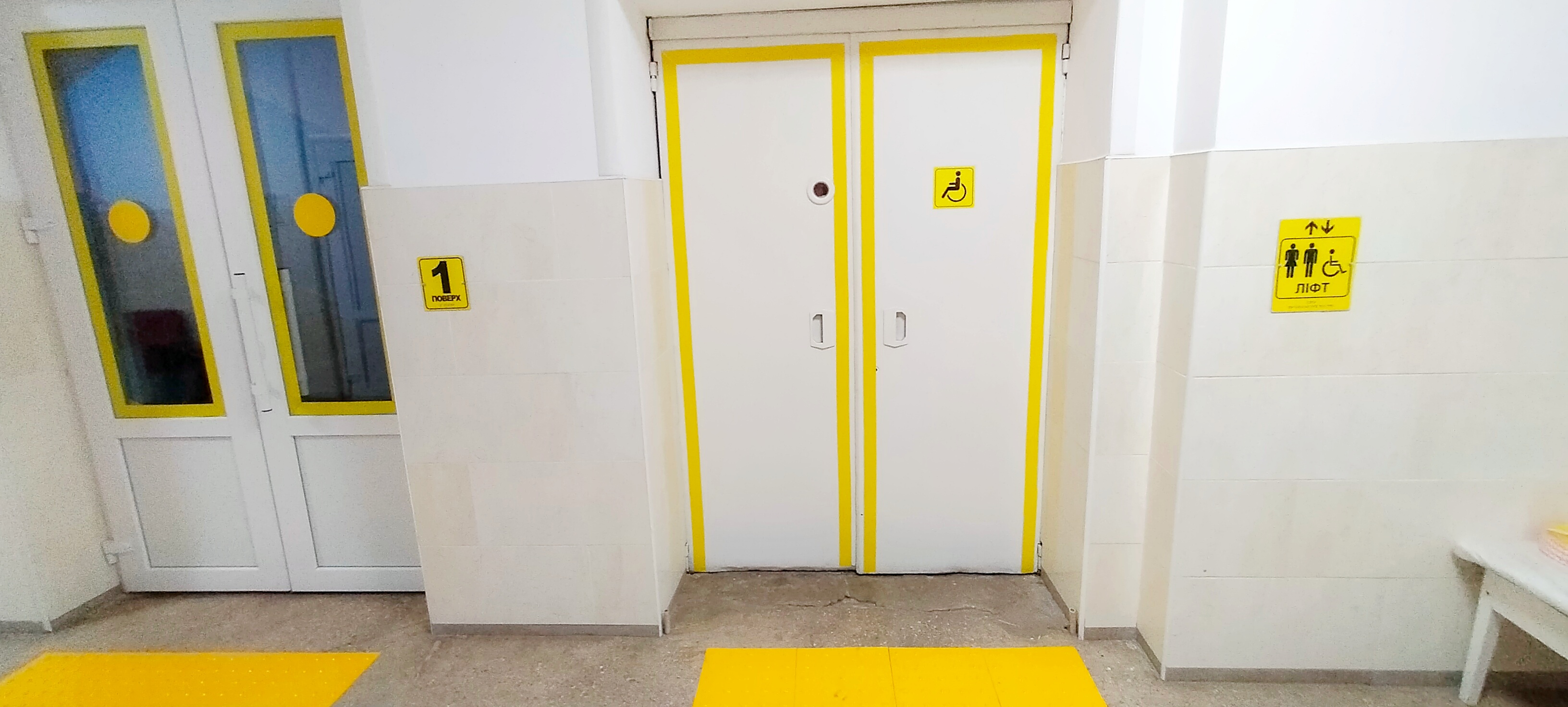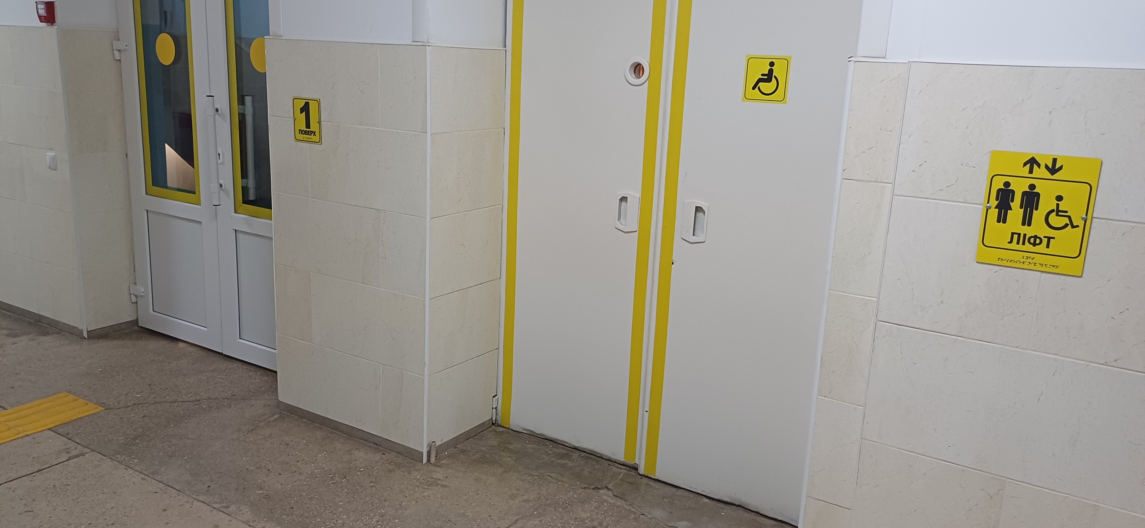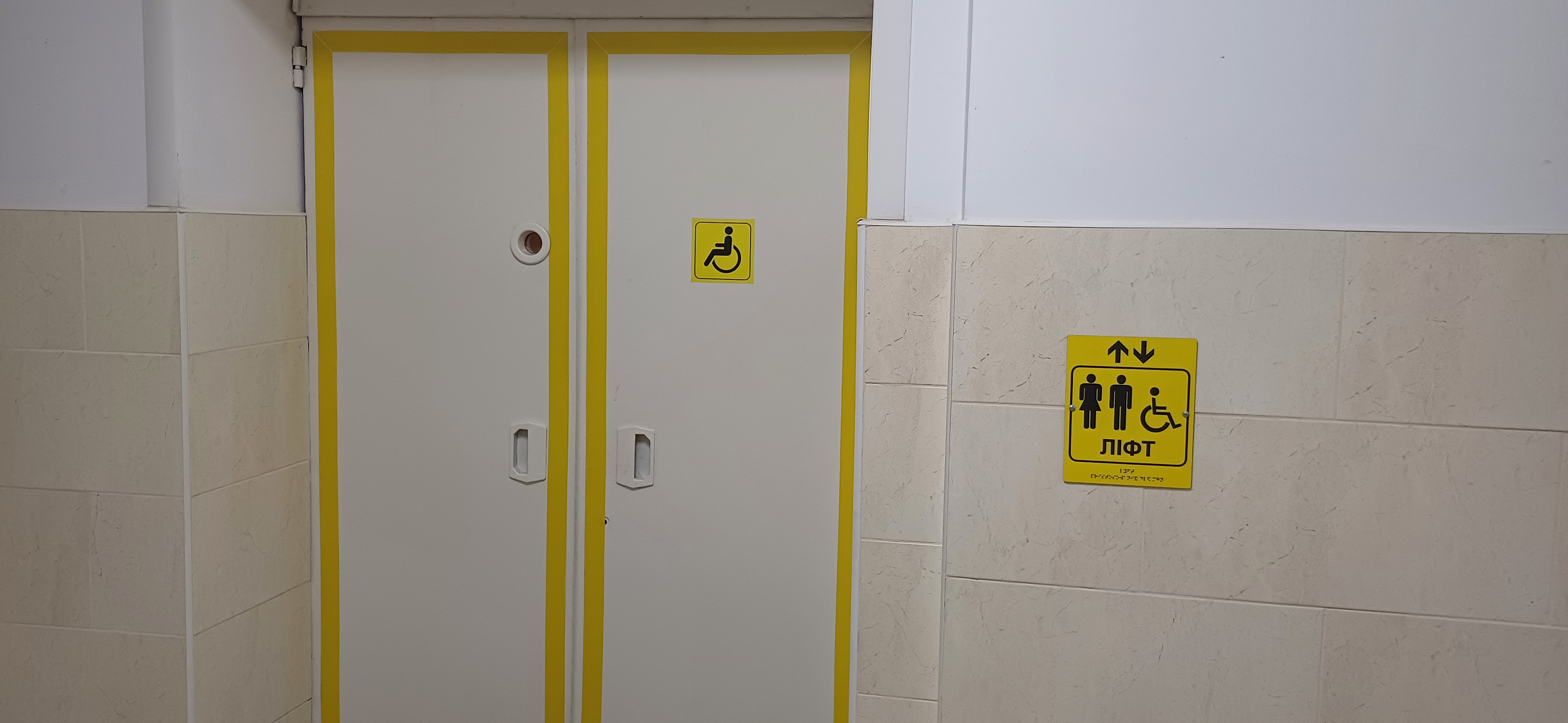 - працюють вантажні ліфти, які дають змогу вільно переміщуватися між поверхами людям з інвалідністю;