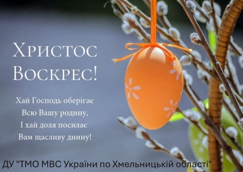 Шановні пацієнти та колеги! Від щирого серця вітаємо вас зі світлим святом Воскресіння Христового! Нехай Великдень принесе у ваші домівки мир, тепло та радість, а серця наповняться вірою, надією й любов’ю. Бажаємо міцного здоров’я, душевної гармонії та щоденних благословень. Нехай це свято надихає нас на добро, взаємну підтримку та турботу один про одного. З повагою та найкращими побажаннями ДУ «ТМО МВС України по Хмельницькій області»