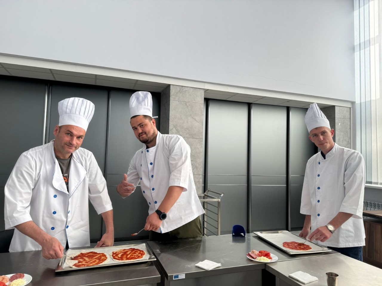 👩🍳Майстер -клас із приготування піци проходив на базі сучасного кулінарного хабу ДНЗ "Хмельницький центр професійно-технічної освіти сфери послуг", де кожен учасник мав доступ до найновішого обладнання й реальної практики. У роботі з тістом, захисники змогли отримати приємне емоційне переключення і занурення в спогади дитинства, де спокійно, тепло і пахне свіжоспеченим хлібом🌞🙏!