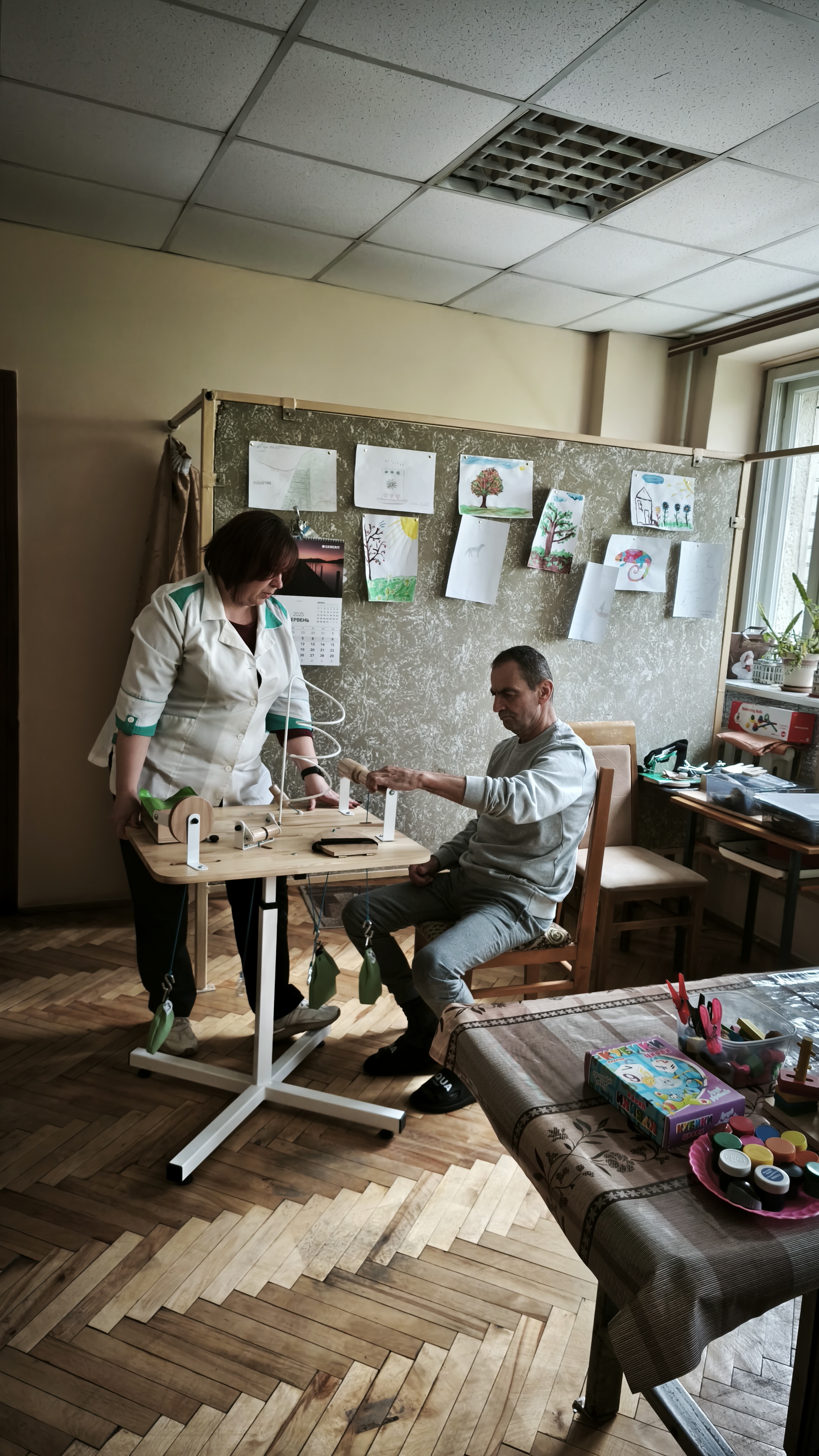 У відділенні працюють лікар ФРМ, фізичний терапевт, ерготерапевт, асистенти фізичного та ерготерапевта, сестри медичні з реабілітації, які надають нестаціонарну реабілітаційну допомогу прикріпленому до поліклініки контингенту та іншим громадянам України на платній основі.