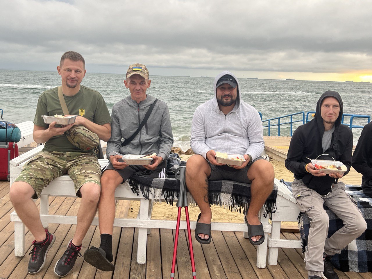 Захисники, які лікуються в ДУ ТМО МВС України по Одеській області розпочали день із зустрічі світанку на морі, смачної кави та сніданку на свіжому повітрі. Сьогодні, у День Державного прапора України наші Захисники урочисто підняли синьо-жовтий стяг. Хлопці отримали масу позитивних емоцій та задоволення, поспілкуватися між собою, відчули атмосферу спокою й підтримки оточуючих незважаючи на примхи природи.