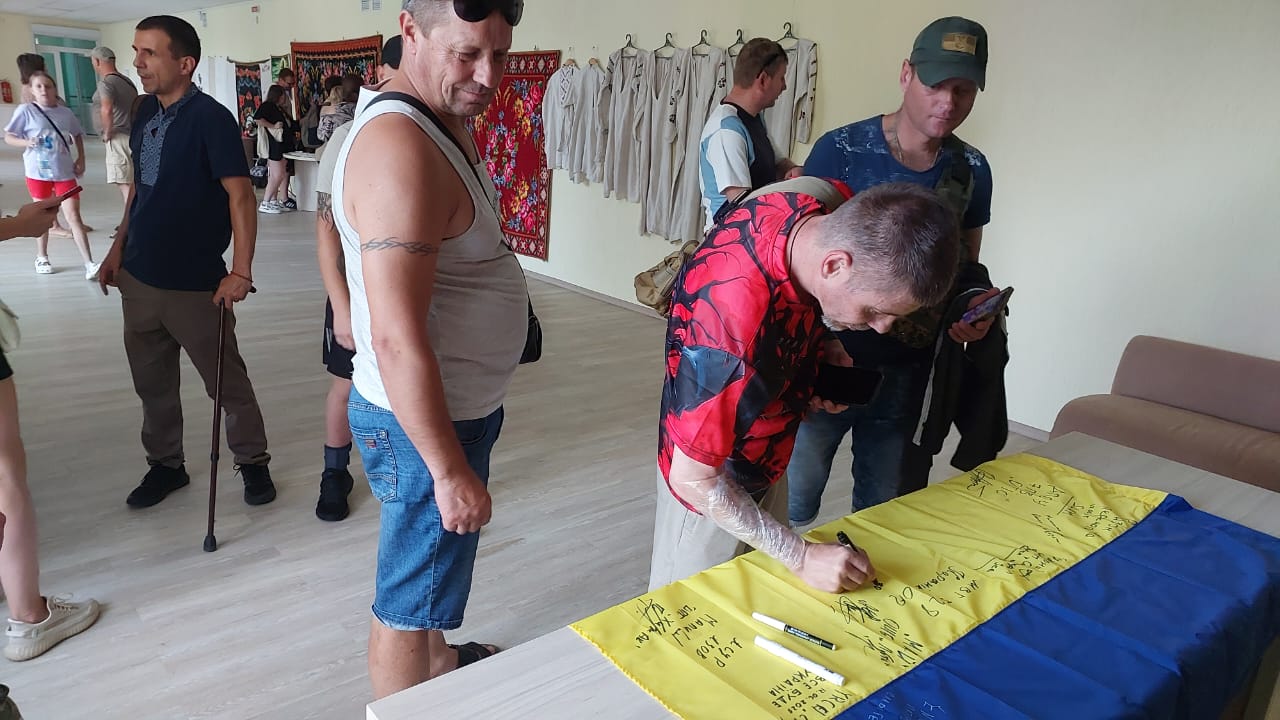 А ще – залишити в музеї частинку власної історії: бойовий прапор із побажаннями та позивними. Такі заходи – не просто відпочинок. Це важлива частина реабілітації, де лікування поєднується з підтримкою, спілкуванням і новими враженнями. Кілька годин у спокійній атмосфері культурної спадщини дають значно більше, ніж можна уявити. Гостей гостинно зустріли працівники музею-заповідника, перед театралізованою виставою на гоголівську тематику. Учасниками театралізованого дійства були персонажі з гоголівських творів. З неймовірними емоціями та позитивним настроєм, втомлені, але задоволені наші учасники заходу повернулися назад.