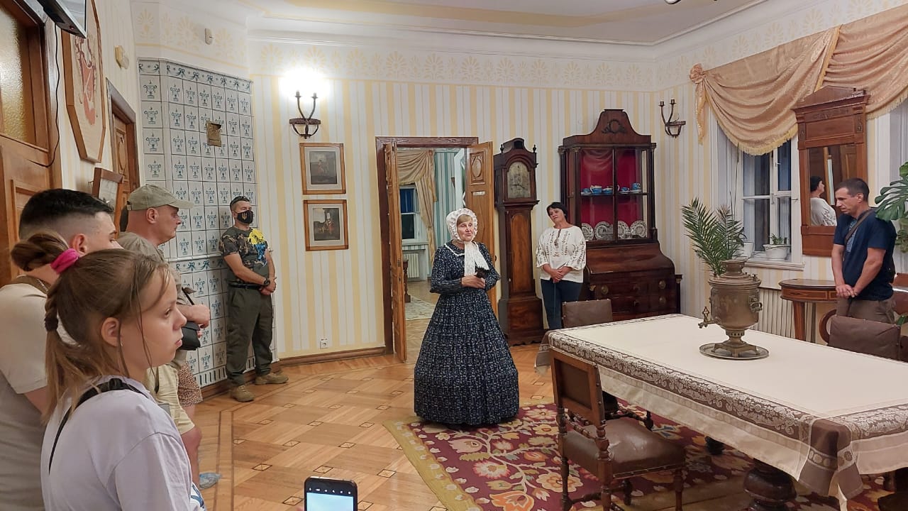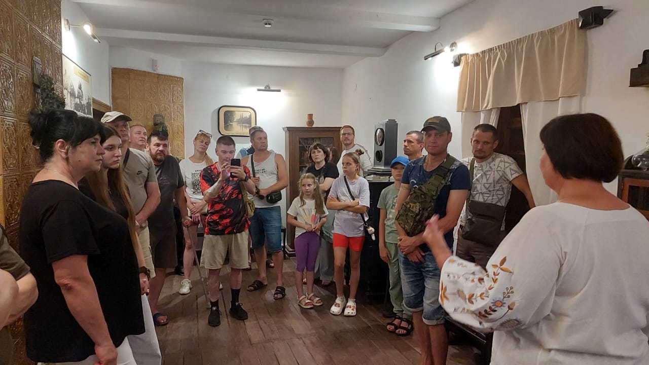 Старі алеї, глибокі сенси й тиха сила цього місця дали змогу на кілька годин згадати про себе, посміятися, просто поговорити.  А ще – залишити в музеї частинку власної історії: бойовий прапор із побажаннями та позивними. Такі заходи – не просто відпочинок. Це важлива частина реабілітації, де лікування поєднується з підтримкою, спілкуванням і новими враженнями. Кілька годин у спокійній атмосфері культурної спадщини дають значно більше, ніж можна уявити. Гостей гостинно зустріли працівники музею-заповідника, перед театралізованою виставою на гоголівську тематику. Учасниками театралізованого дійства були персонажі з гоголівських творів. З неймовірними емоціями та позитивним настроєм, втомлені, але задоволені наші учасники заходу повернулися назад.