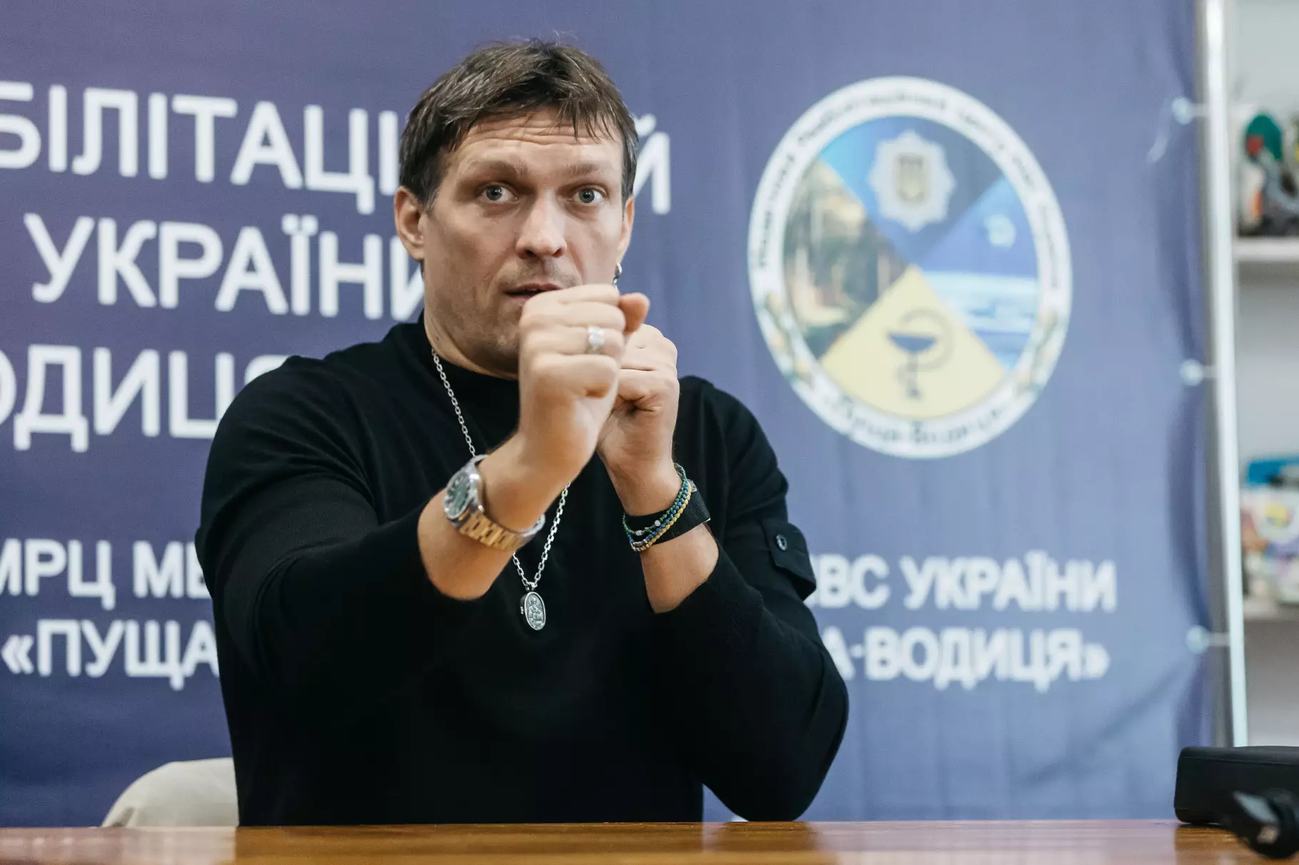 Український чемпіон світу з боксу Олександр Усик відвідав поранених бійців Об’єднаної штурмової бригади Національної поліції України «Лють» та батальйону особливого призначення (стрілецький), які нині проходять реабілітацію у медичному реабілітаційному центрі Міністерства внутрішніх справ.