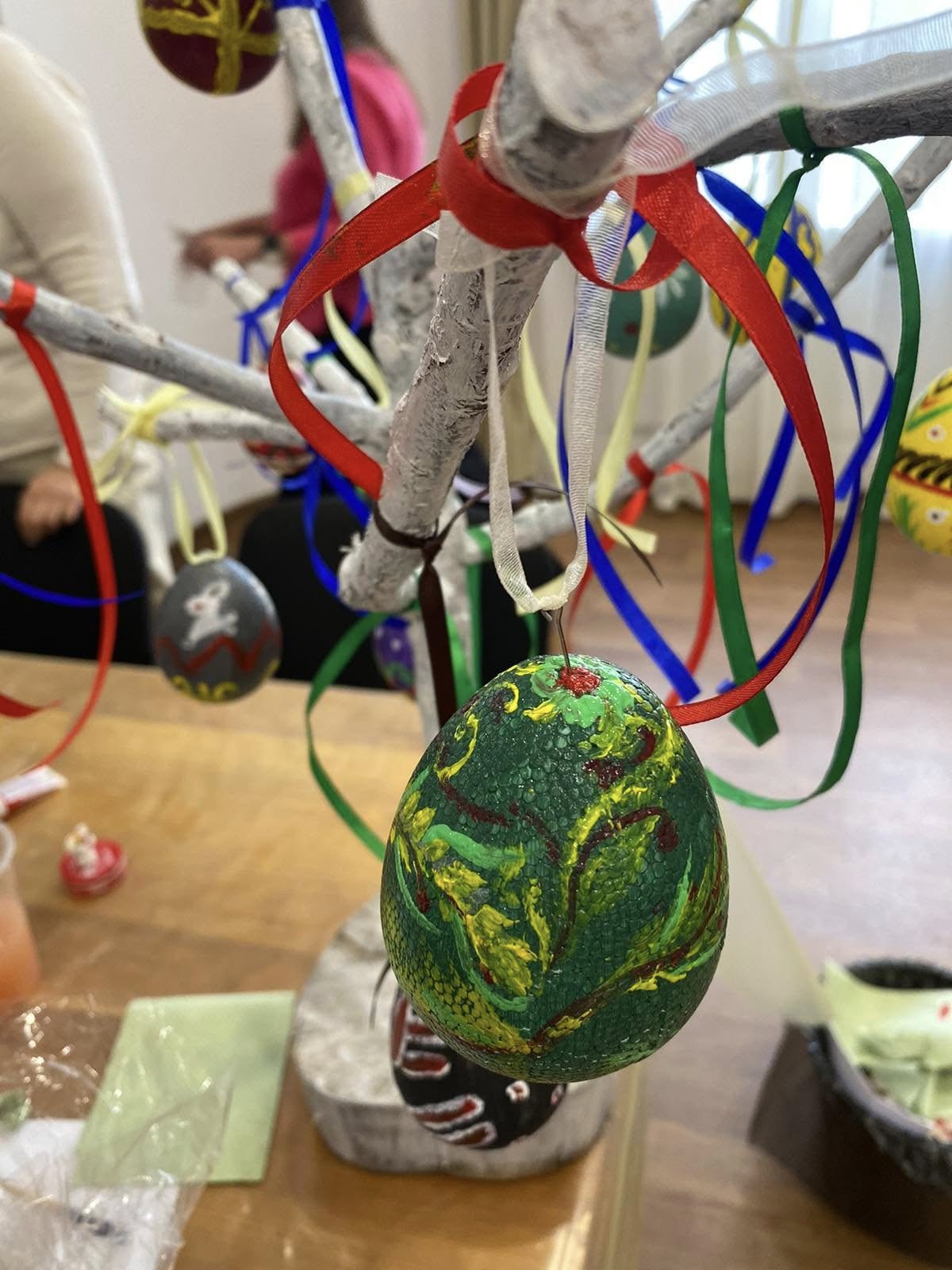 Мета заняття: Знайомство з історією писанки, зняття внутрішньої напруги, пошук внутрішнього ресурсу через взаємодію з фарбами і арт-матеріалом, спілкування, прикрашання Великоднього дерева!
