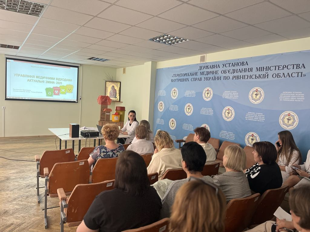 На базі ДУ «ТМО МВС України по Рівненській області» проведено майстер-клас для фахівців установи на тему «Управління медичними відходами, актуальні зміни 2025». Захід організовано та проведено Відділом інфекційного контролю установи. Під час заходу розглянуто зміни в законодавстві, актуальні питання щодо поводження з відходами: