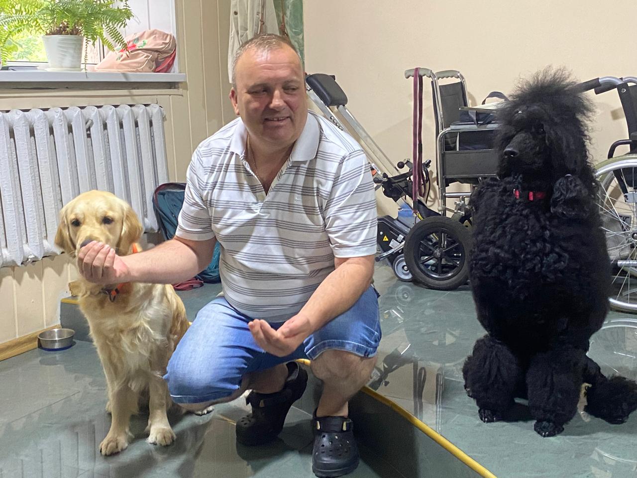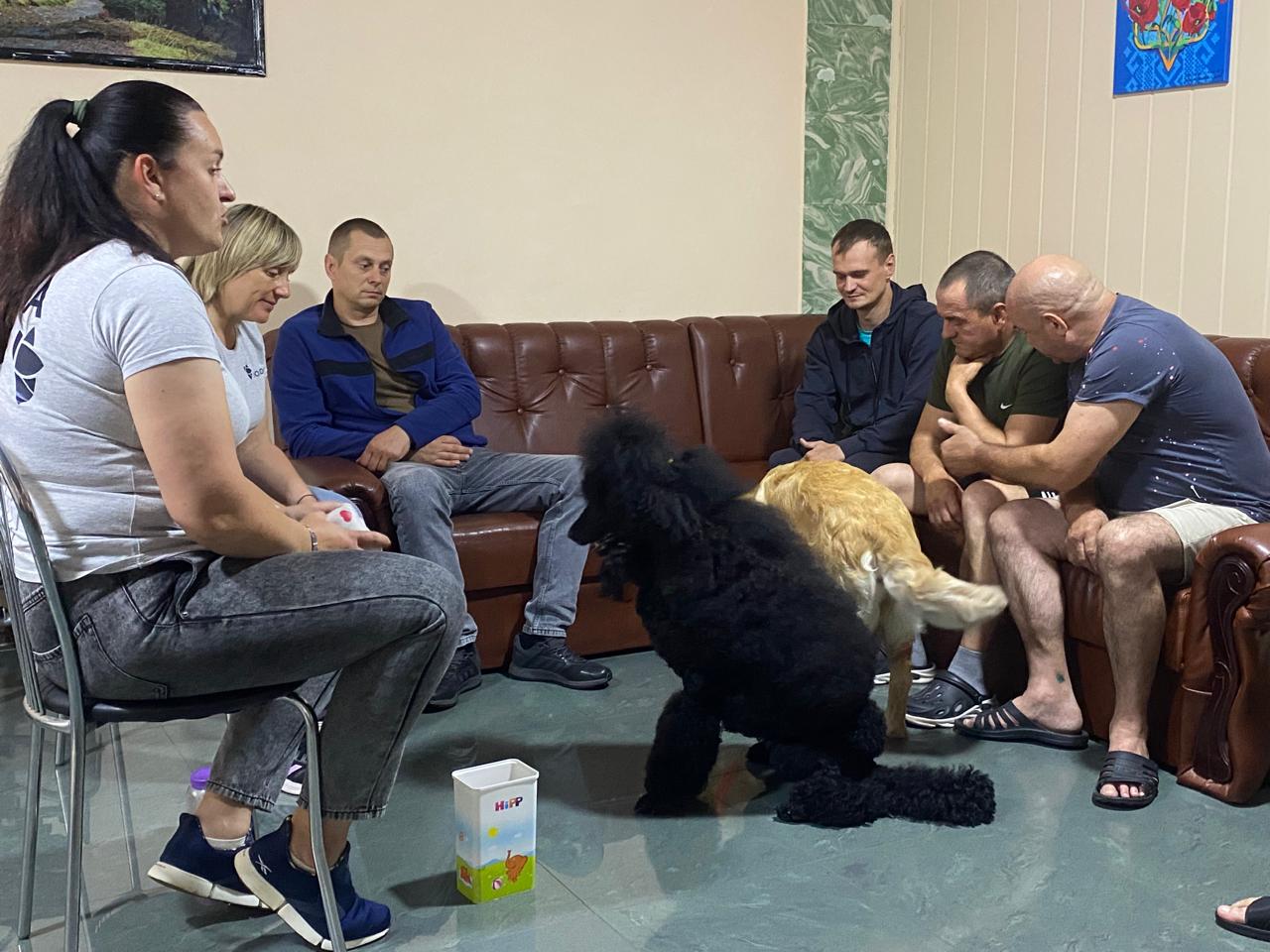 Сеанс каністерапії для поранених Захисників, які проходять лікування та реабілітацію в установі, організовано сектором соціального захисту і супроводу постраждалих та членів їх сімей у співпраці з Рівненським обласним центром зайнятості та ГО «Центр людино-тваринної взаємодії «Докадог».