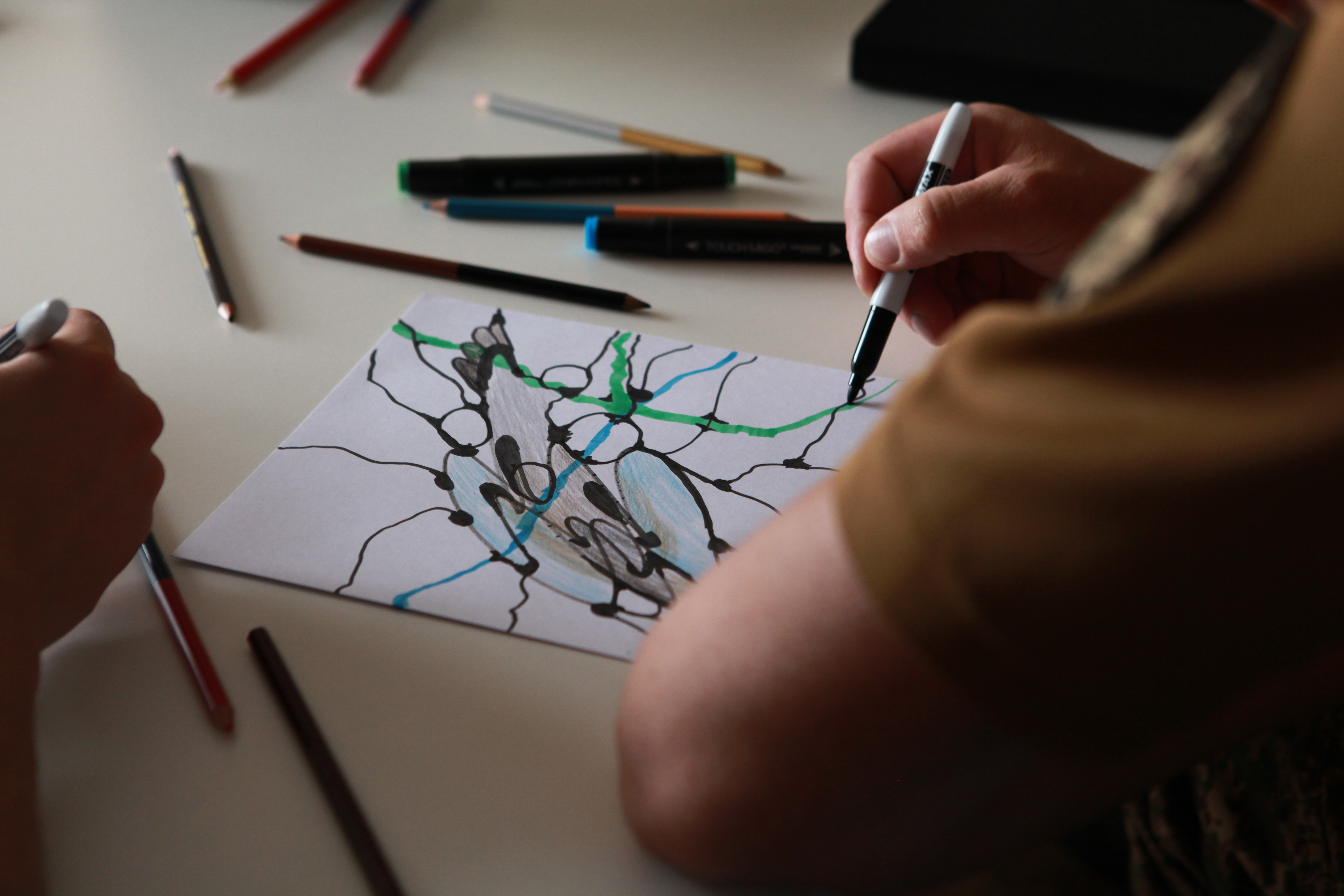 Основною метою проведення групового заняття з нейрографіки було сприяння емоційному розвантаженню, зменшенню психологічного напруження, відновленню внутрішніх ресурсів та покращенню психоемоційного стану.
