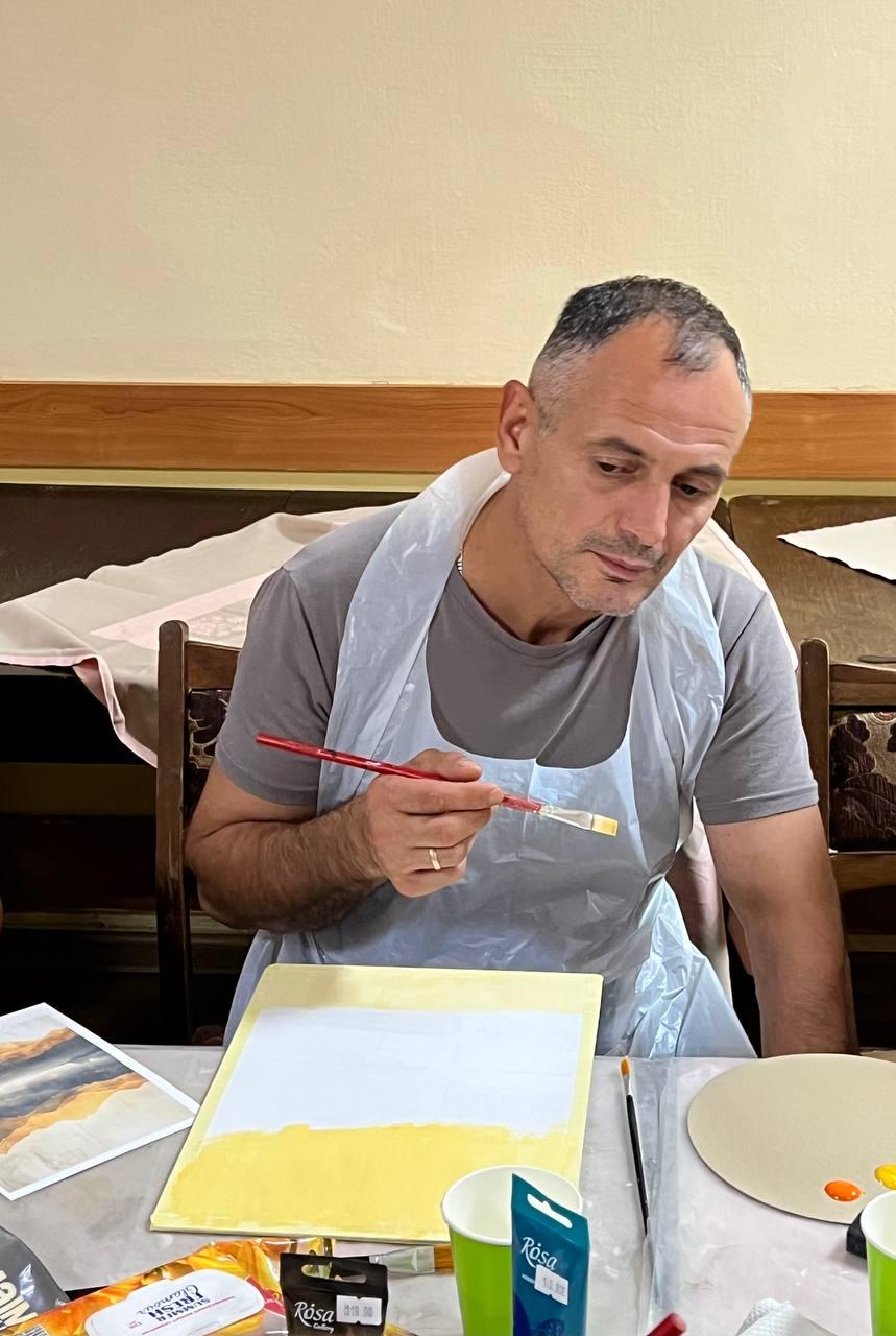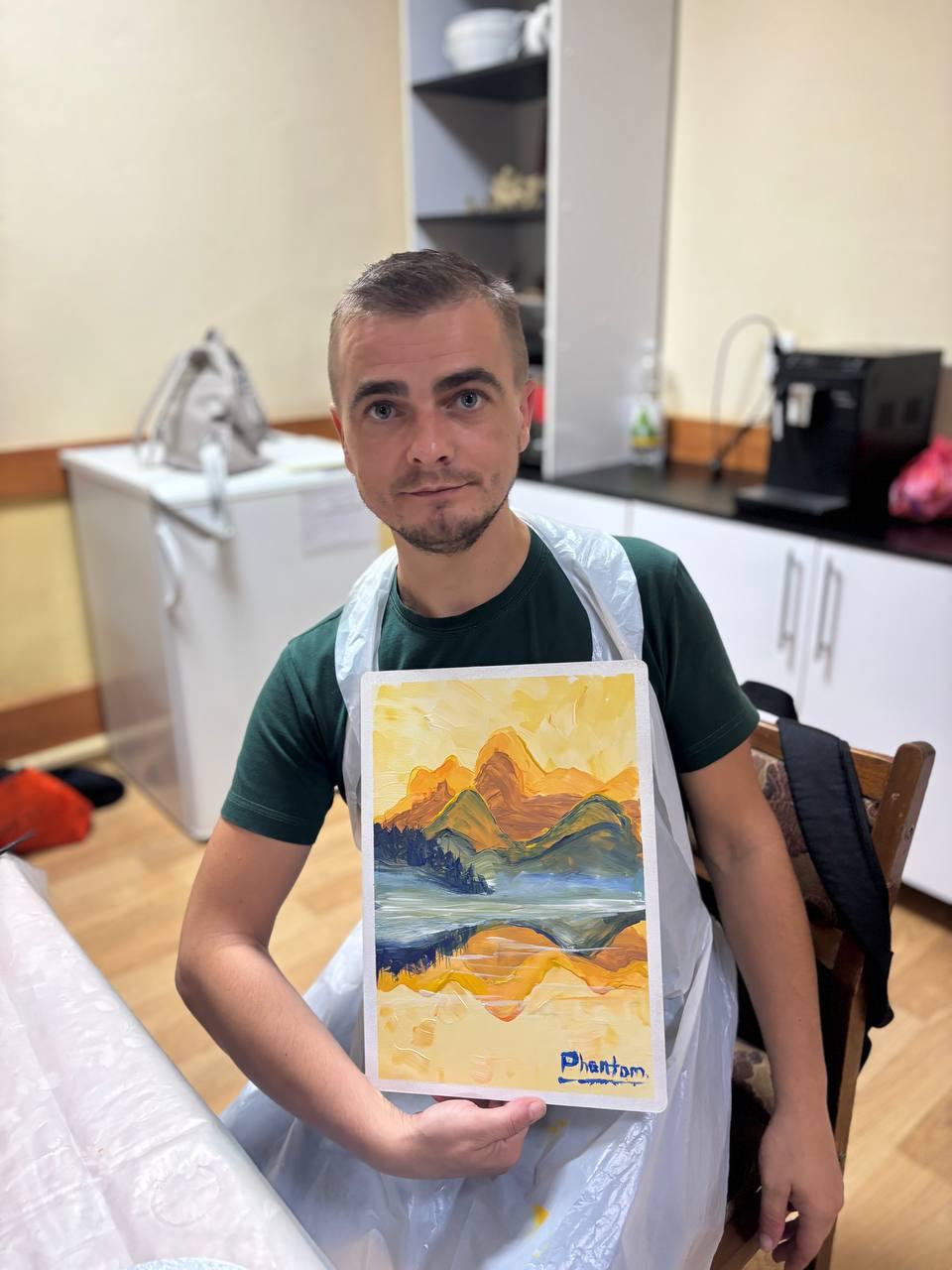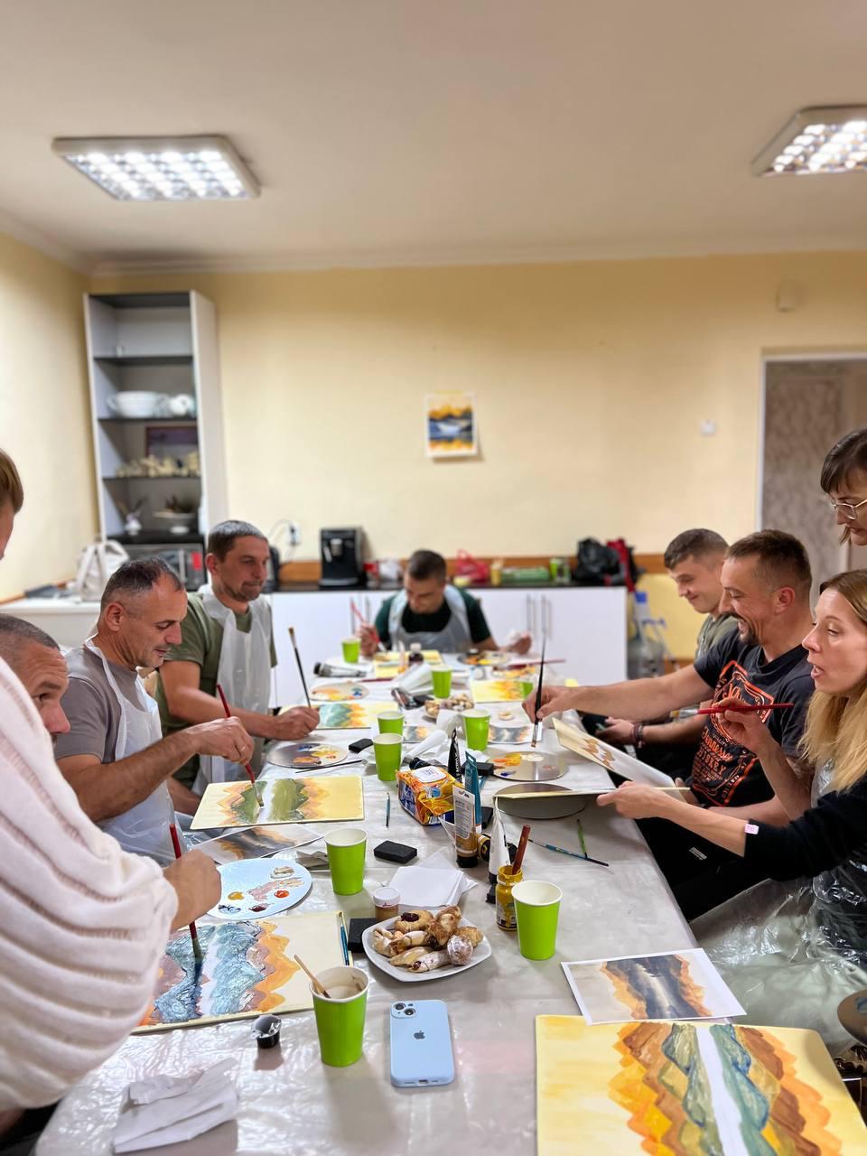 Темою заняття стало створення картин «В горах осінь», де учасники відобразили красу українських гір, барви золотої осені та власні емоції. У процесі малювання військовослужбовцям та правоохоронцям допомагали учасниці творчого проєкту «Творці без меж» – Оксана Мартинюк і Мар’яна Дячинська. Вони ділилися професійними порадами, підтримували кожного та сприяли тому, щоб роботи стали яскравим проявом внутрішнього світу авторів. Такі арт-заняття мають важливе значення для реабілітації поранених, адже допомагають зняти психологічну напругу, відновити емоційний баланс і відчути натхнення. Малювання стало для учасників не лише способом самовираження, а й джерелом позитивних вражень та віри у власні сили.