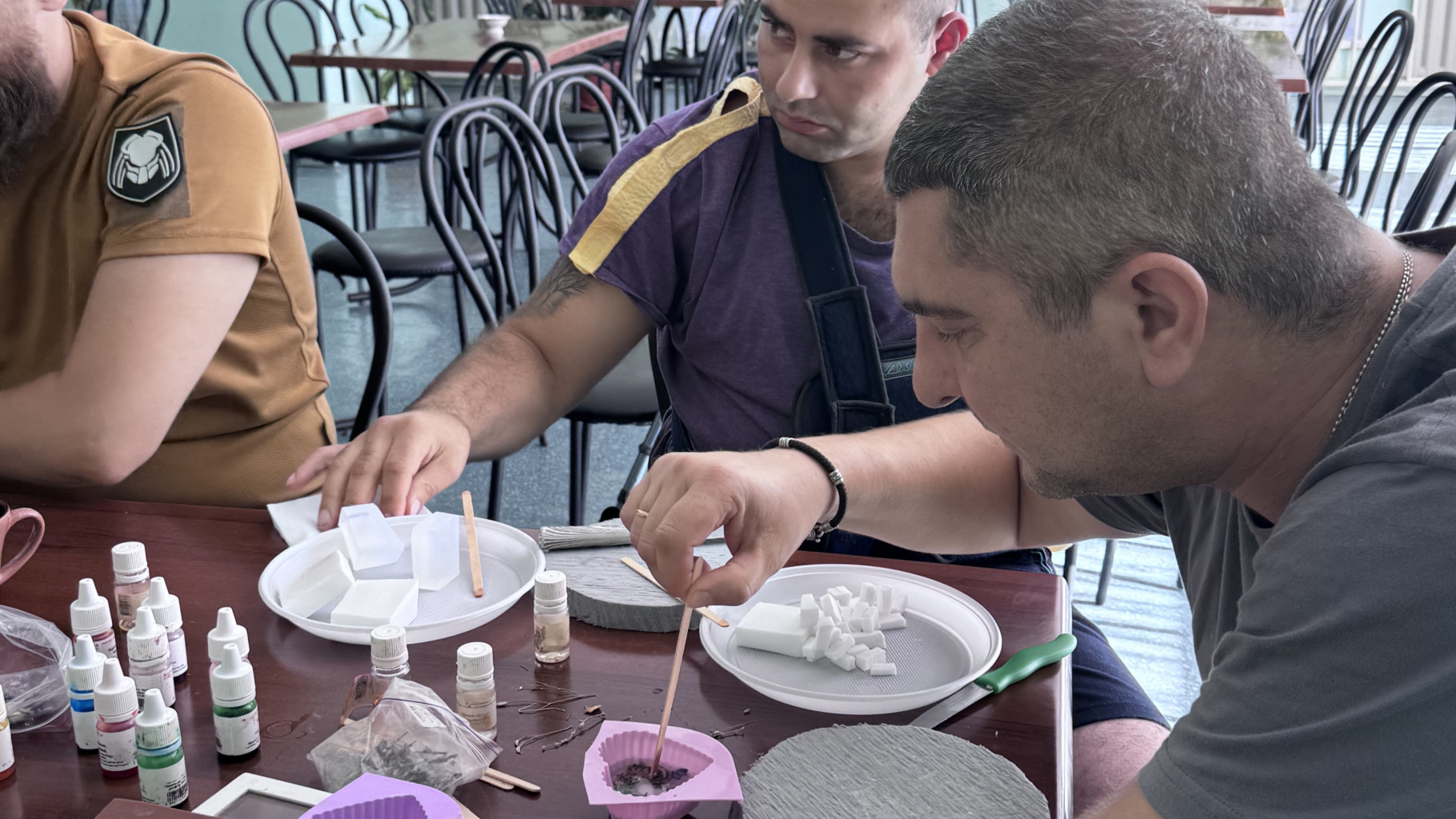 Захисникам, які отримали поранення під час бойових дій, проходять лікування чи реабілітацію у ДУ «ТМО МВС по Вінницькій області» сектором соціального захисту та супроводу постраждалих, було організовано майстер-клас з миловаріння.