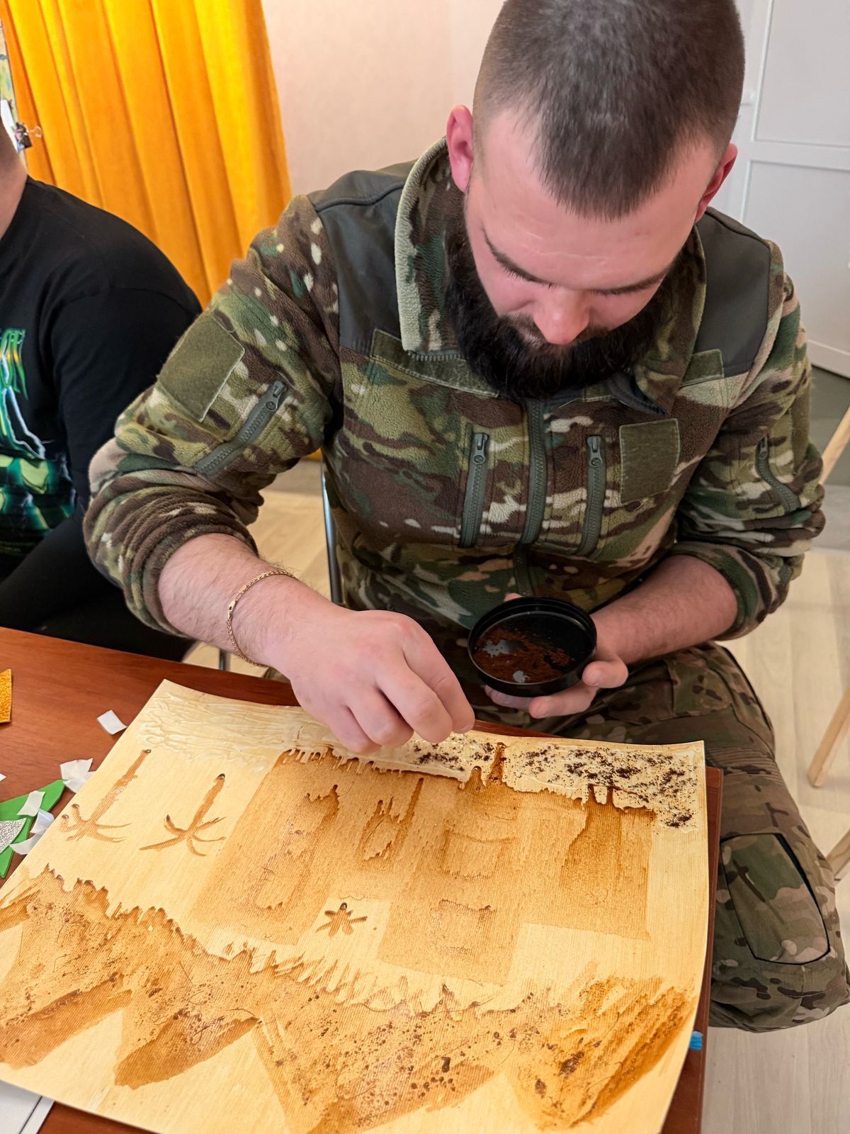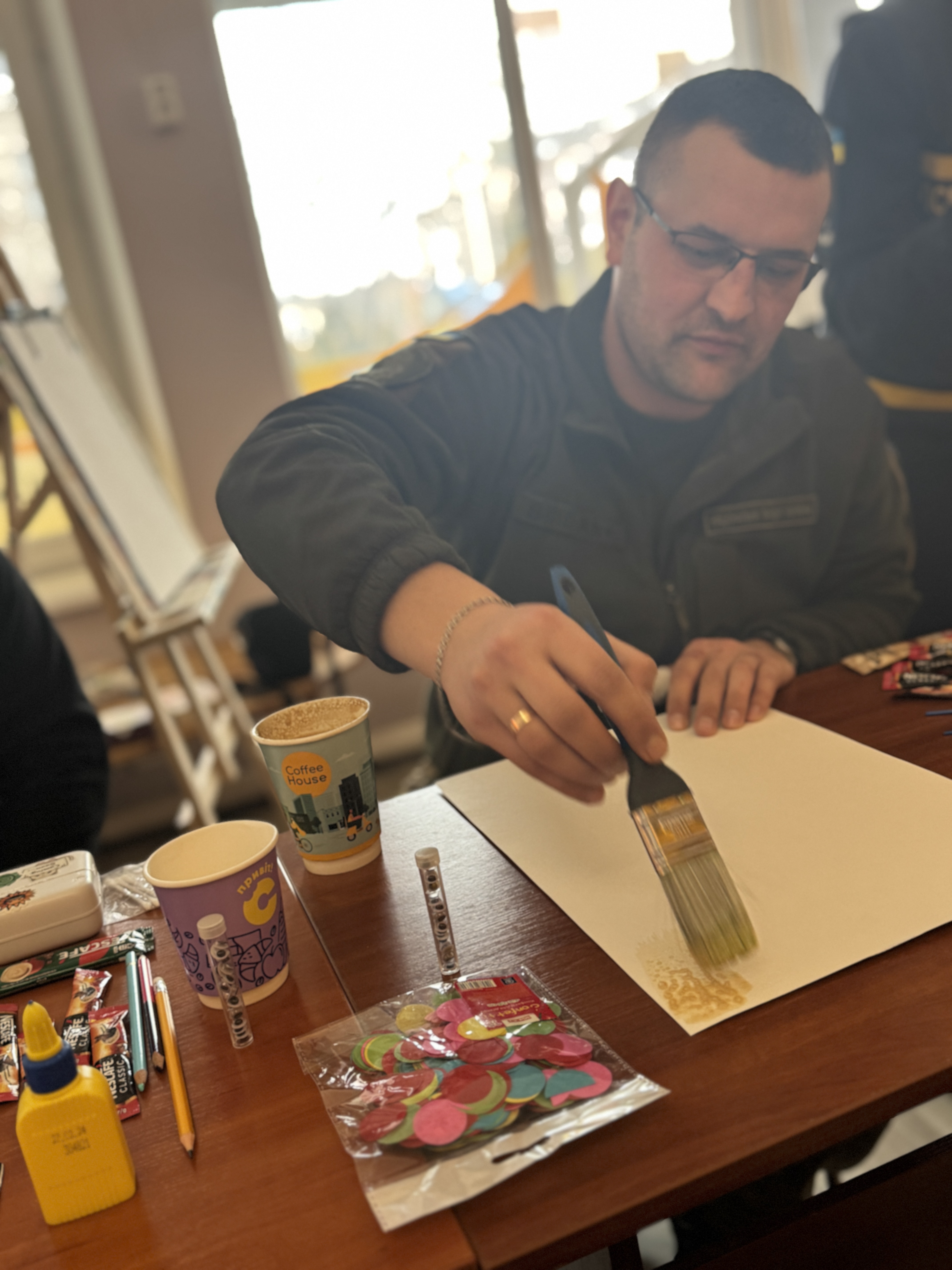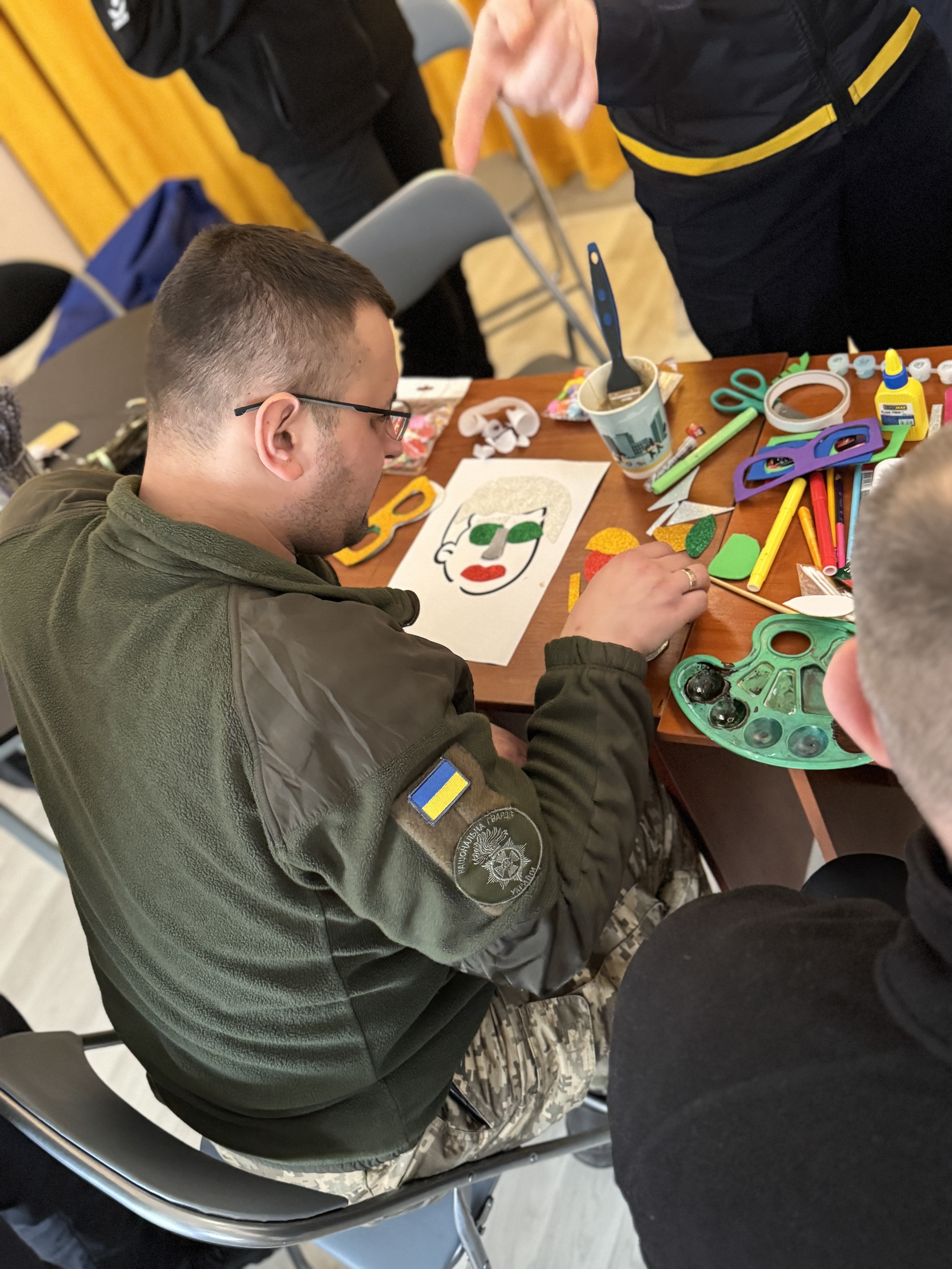 На запрошення психологів ДСНС та ГУНП у Волинській області спільно з практичним психологом МЦПД та ППВ та інспектором сектору соціального захисту і супроводу постраждалих та членів їх сімей, на базі Центру Життєстійкості для поранених військовослужбовців було проведено арт терапію.