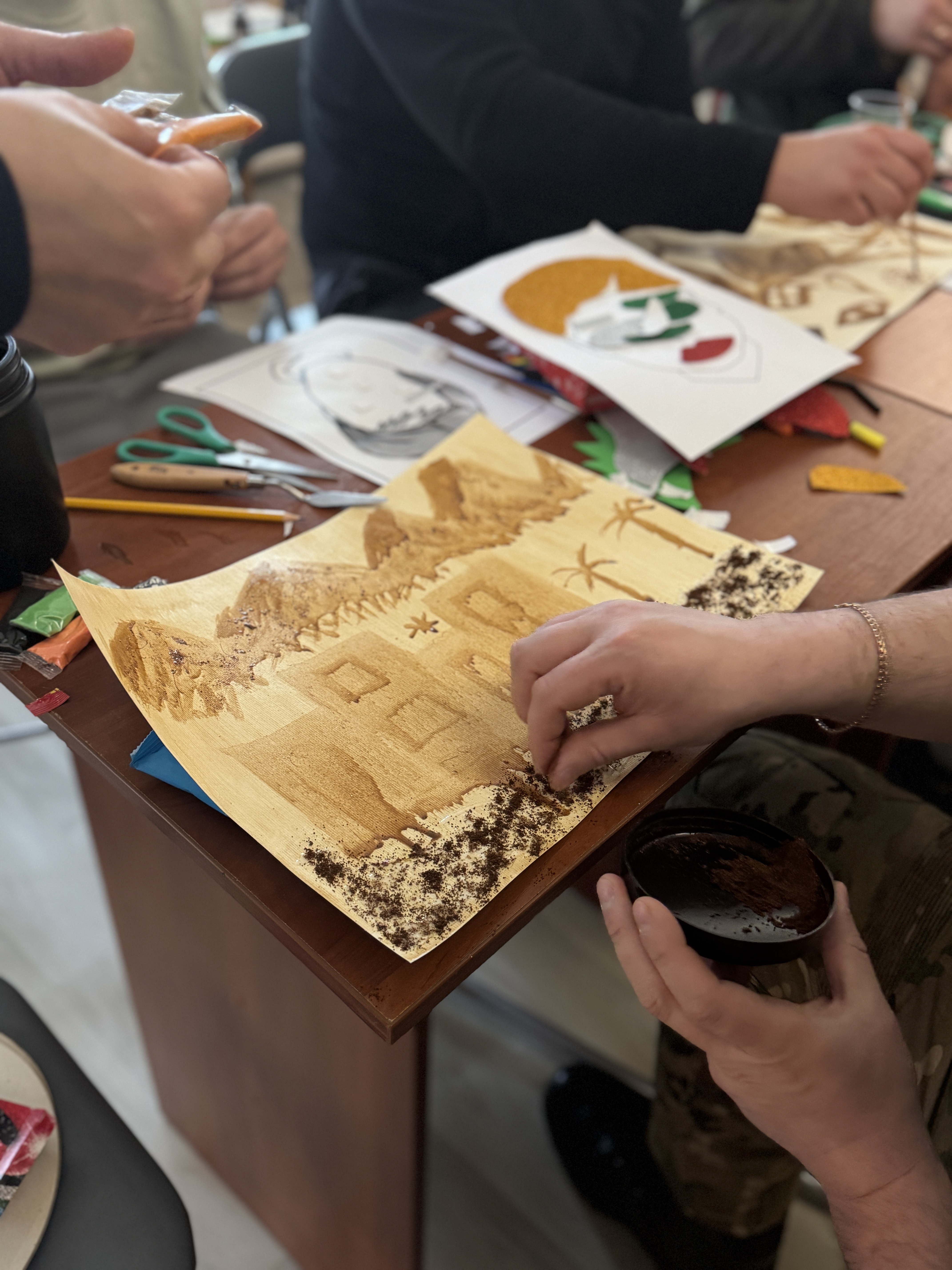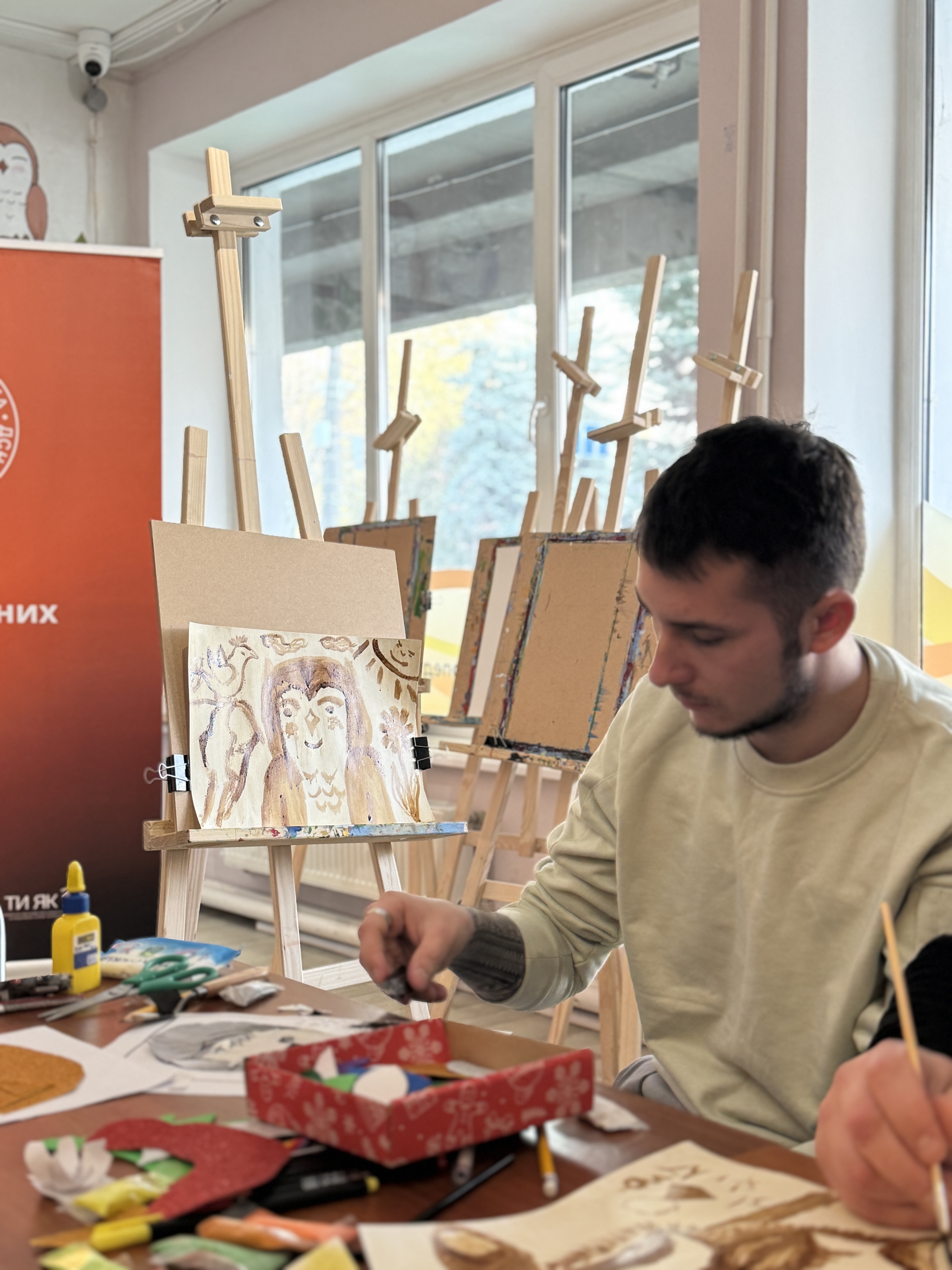Учасники заходу малювали кавою, створювали контури, відчували текстури, працювали з кольоровим піском. Цей захід сприяв емоційному розвантаженню, допоміг знизити рівень стресу та відновити внутрішній ресурс.