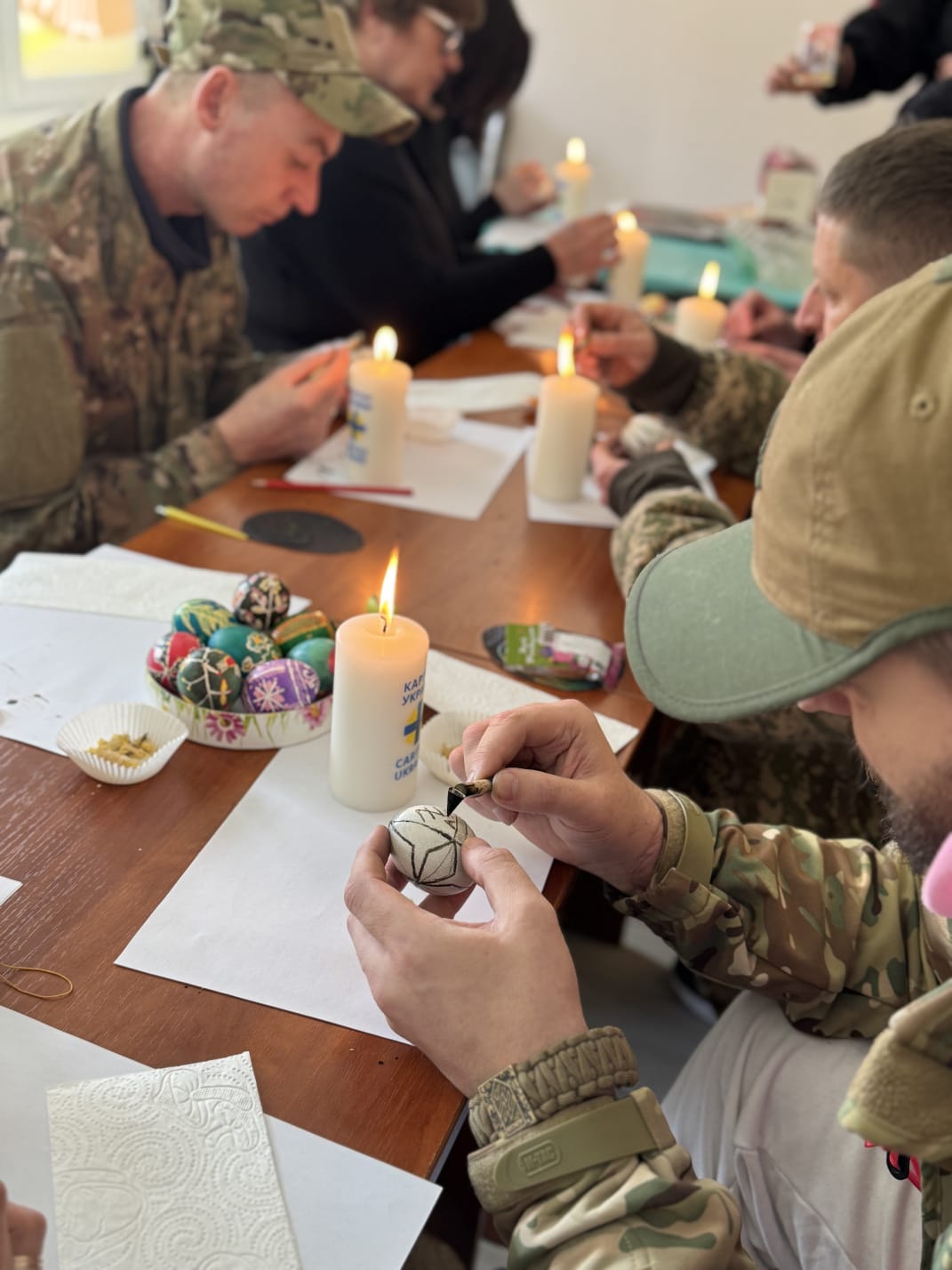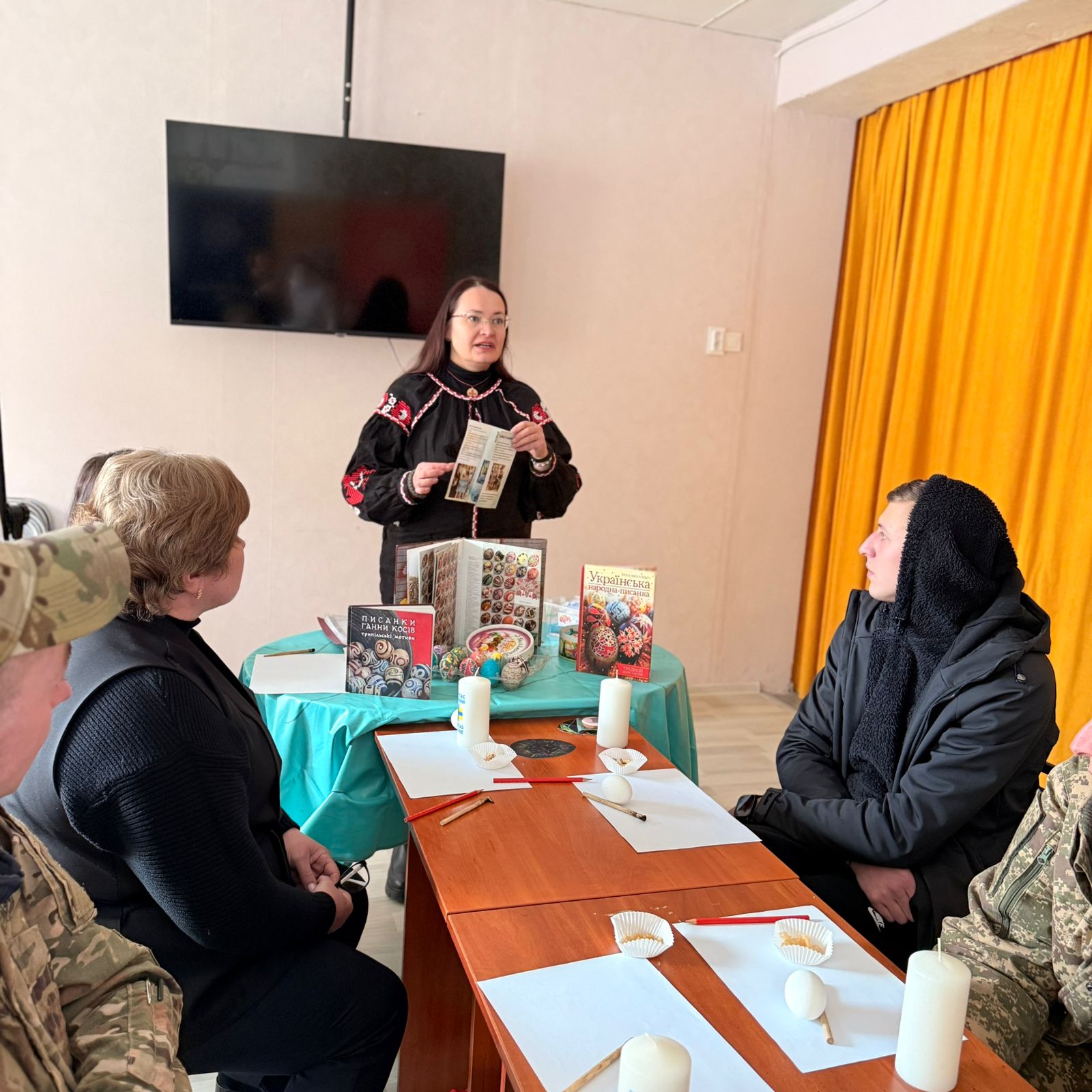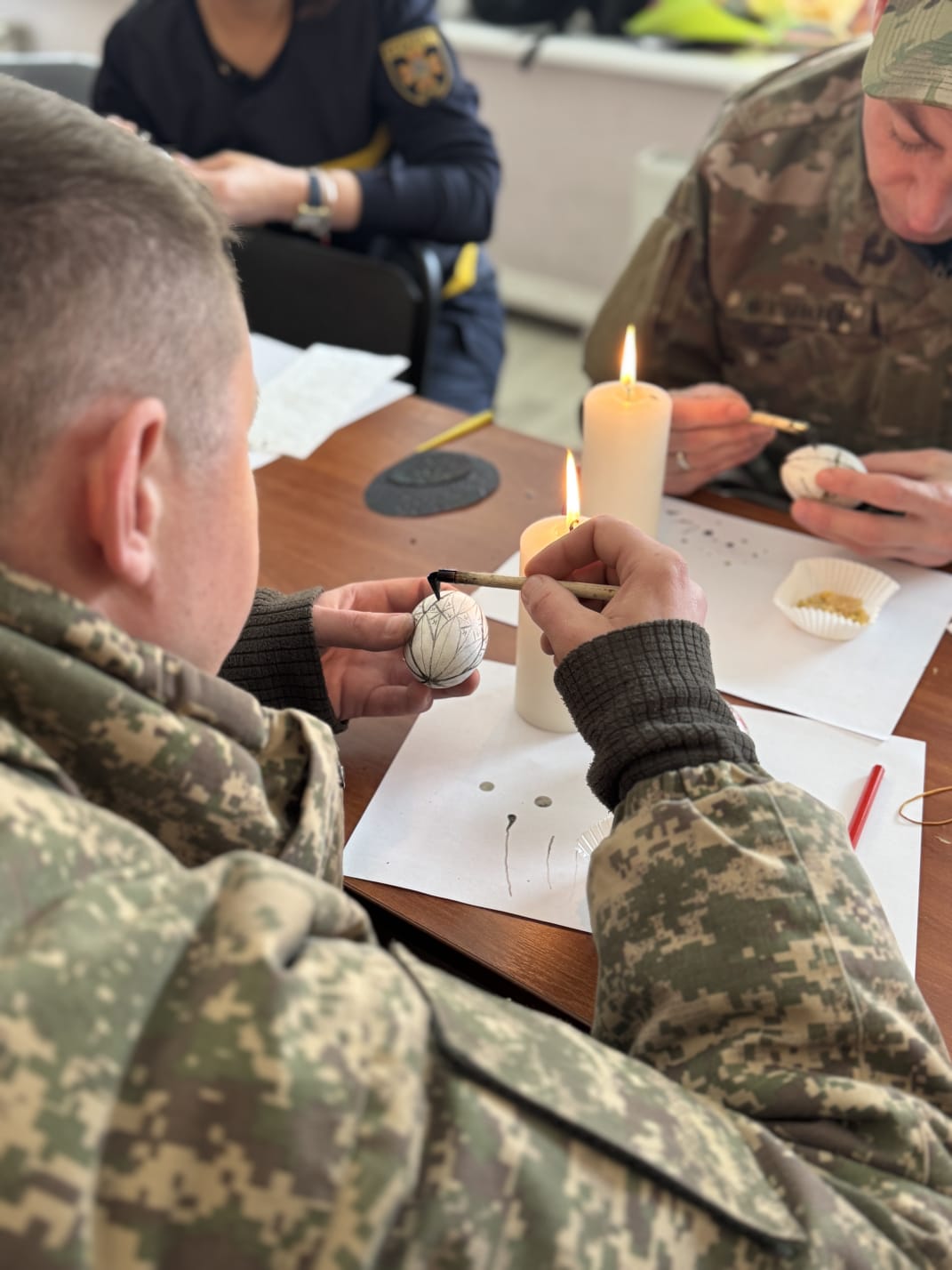 Писанка стала не лише символом Великодня, але й об’єктом національної гордості українців. Вона вражає своєю красою та різноманітністю орнаментів. Для проведення майстер класу була запрошена митець та майстриня-писанкарка Ольга Навротюк. Вона ознайомила наших Захисників з тонкощами та секретами створення писанок, символікою зашифрованих знаків та орнаментами різних регіонів України.