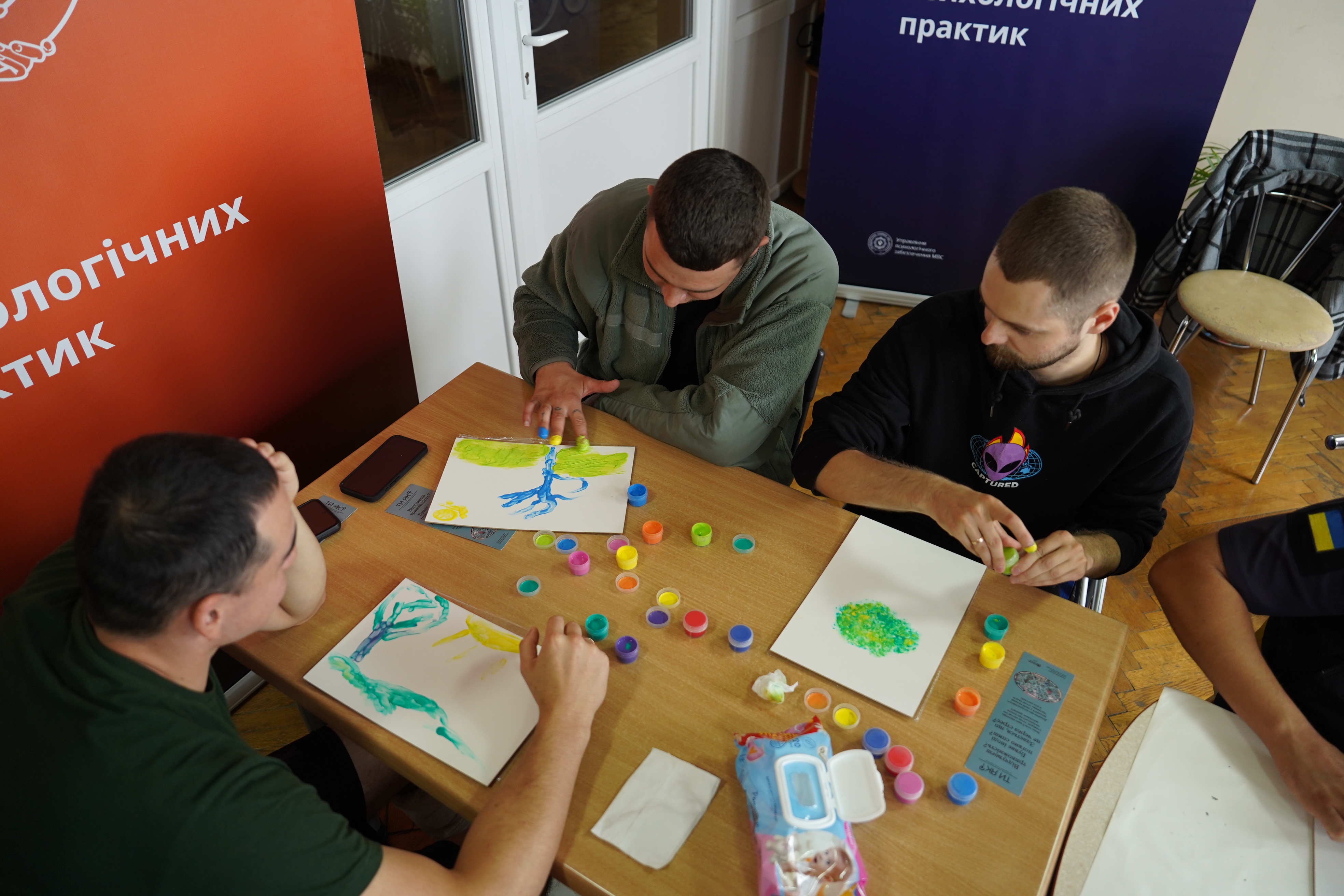 У рамках реалізації проєкту МВС "Пункт психологічних практик" психологами Центру життєстійкості Луцької ТГ було проведено заняття з арт-терапії (створення інтуїтивних картин пальчиковими фарбами) для військовослужбовців та працівників Національної поліції, які проходять лікування та реабілітацію в стаціонарному відділенні ДУ"ТМО МВС України по Волинській області".