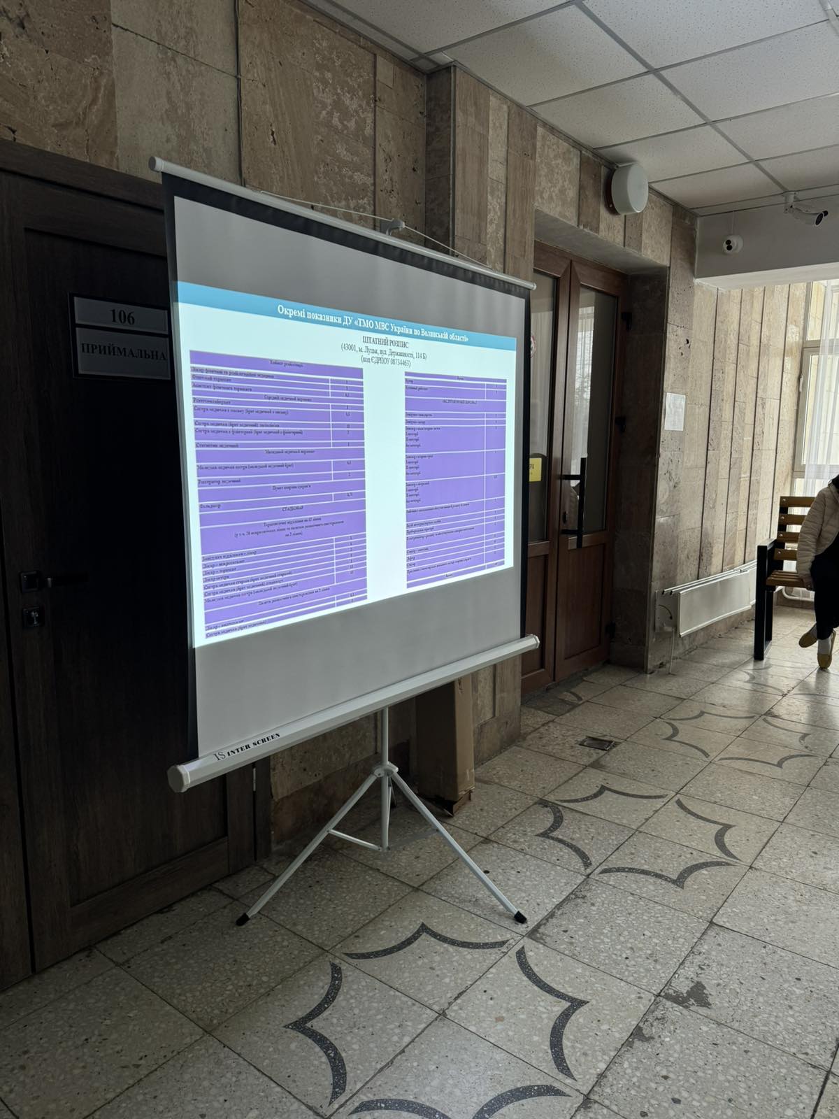Тво начальника установи Матус Л.Ф. виступила з аналізом роботи установи за 2025р. На презентаціії було відображено результати роботи підрозділів установи в порівнянні з 2023 р. та наголошено про шляхи удосконалення лікувально-діагностичної допомоги пацієнтам, особливо пораненим.